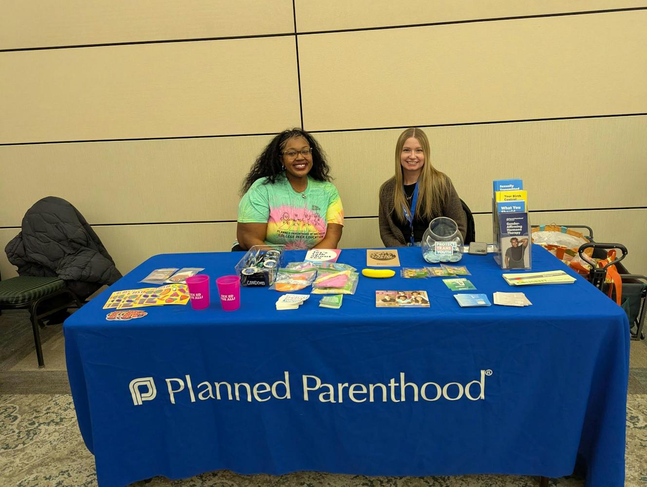 Planned Parenthood had a table with information on gender-affirming hormone therapy, birth control, sexually transmitted diseases and consensual sex as well as free stickers, cups, menstrual products and condoms. Planned Parenthood is a major U.S. nonprofit organization that works to provide affordable reproductive health care and sex education to all.
