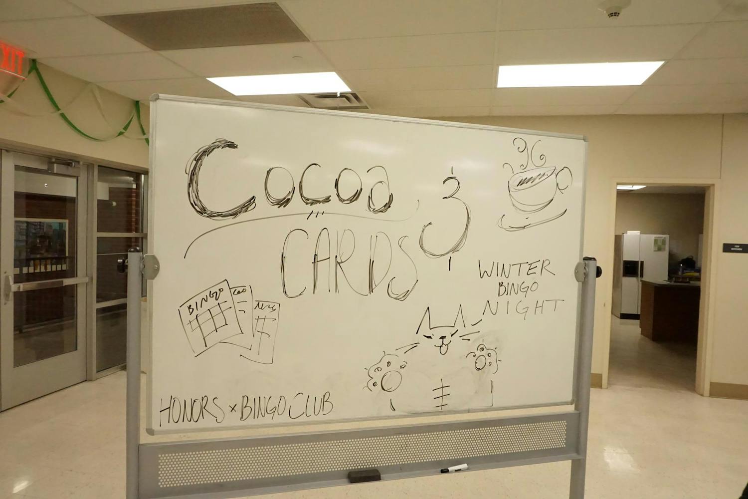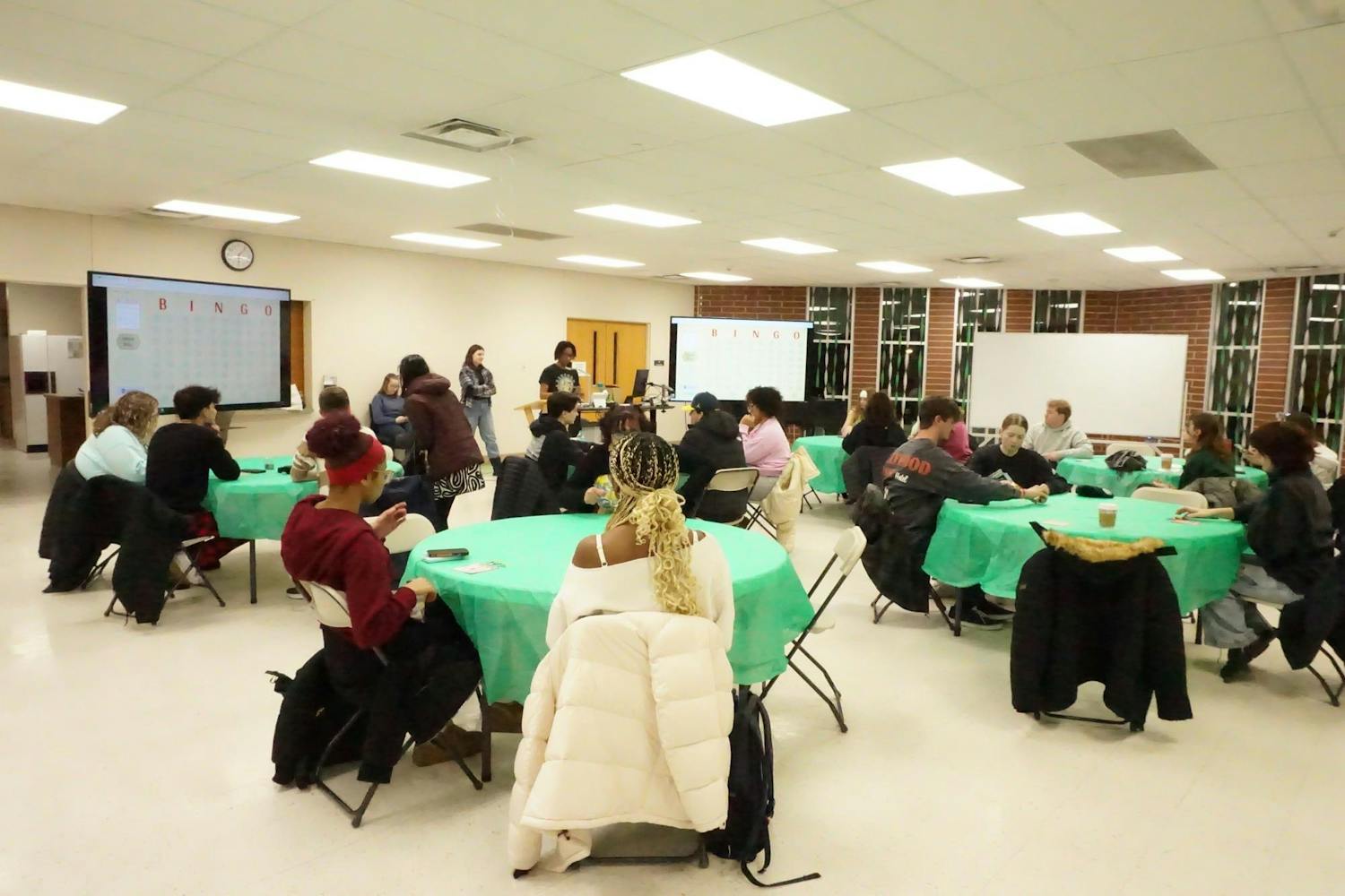 Cocoa & Cards: Winter Bingo Night was hosted by the Honors College and Bingo Club in room 107 of the Honors College on Thursday, Jan. 22, 2026. The event featured an assortment of snacks including a variety of chips, some cookies, and, of course, hot cocoa. The event also featured a variety of small prizes and three big prizes of gift baskets for the big bingo winners. (Gallery by Owen Cardenas)