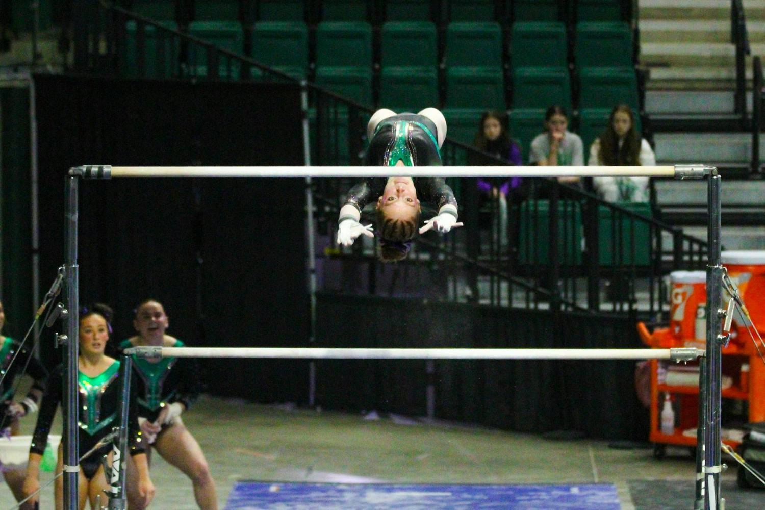 Eastern Michigan University Gymnastics went up against Central Michigan University for its annual Purple Meet on Sunday, Feb. 8, 2026 falling to the Chippewas by just 2.55 points. (Gallery by Bradan Copeland)