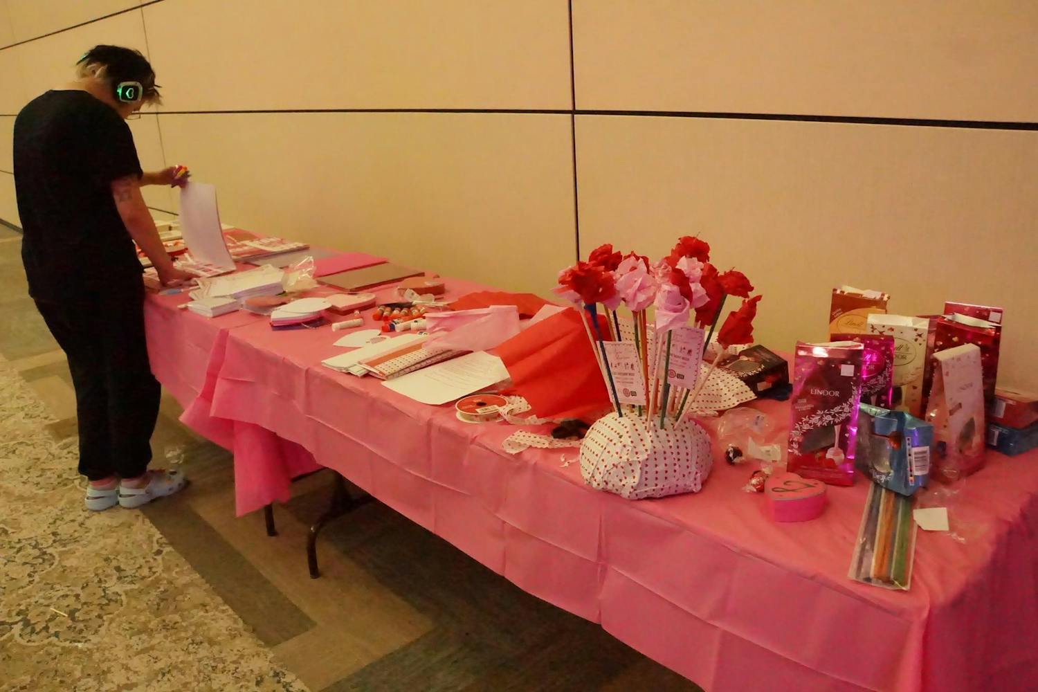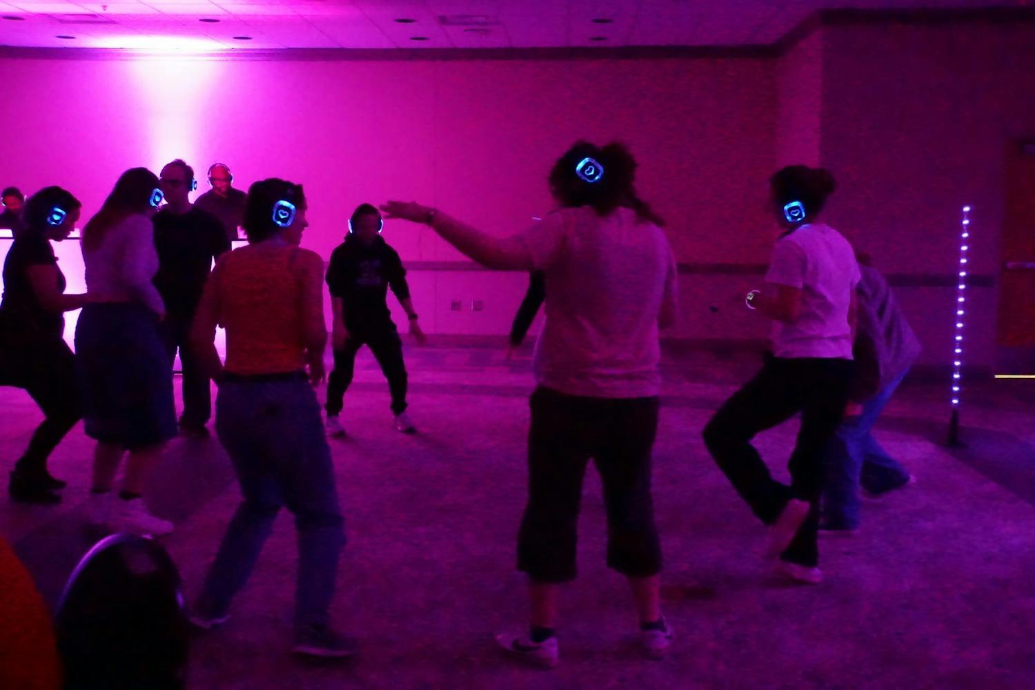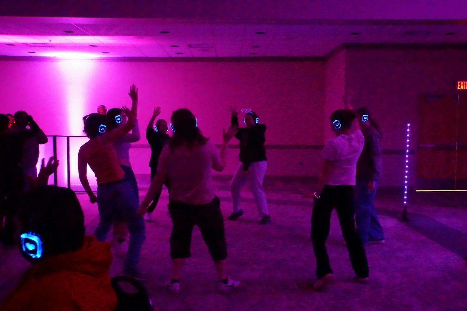 The Be Your Own Valentine silent disco was hosted by the Office of Access and Opportunity for students to practice self-love in preparation for Valentine's Day. The event featured enough food for over 200 people, which included pizza and breadsticks from Little Caesars, an assortment of fruit, meatballs, chips, and queso. The event also featured a mocktail station for students to enjoy while they danced to music mixed by two DJs. The silent disco took place in the Student Center Ballroom on Tuesday, Feb. 10, 2026. (Gallery by Owen Cardenas)