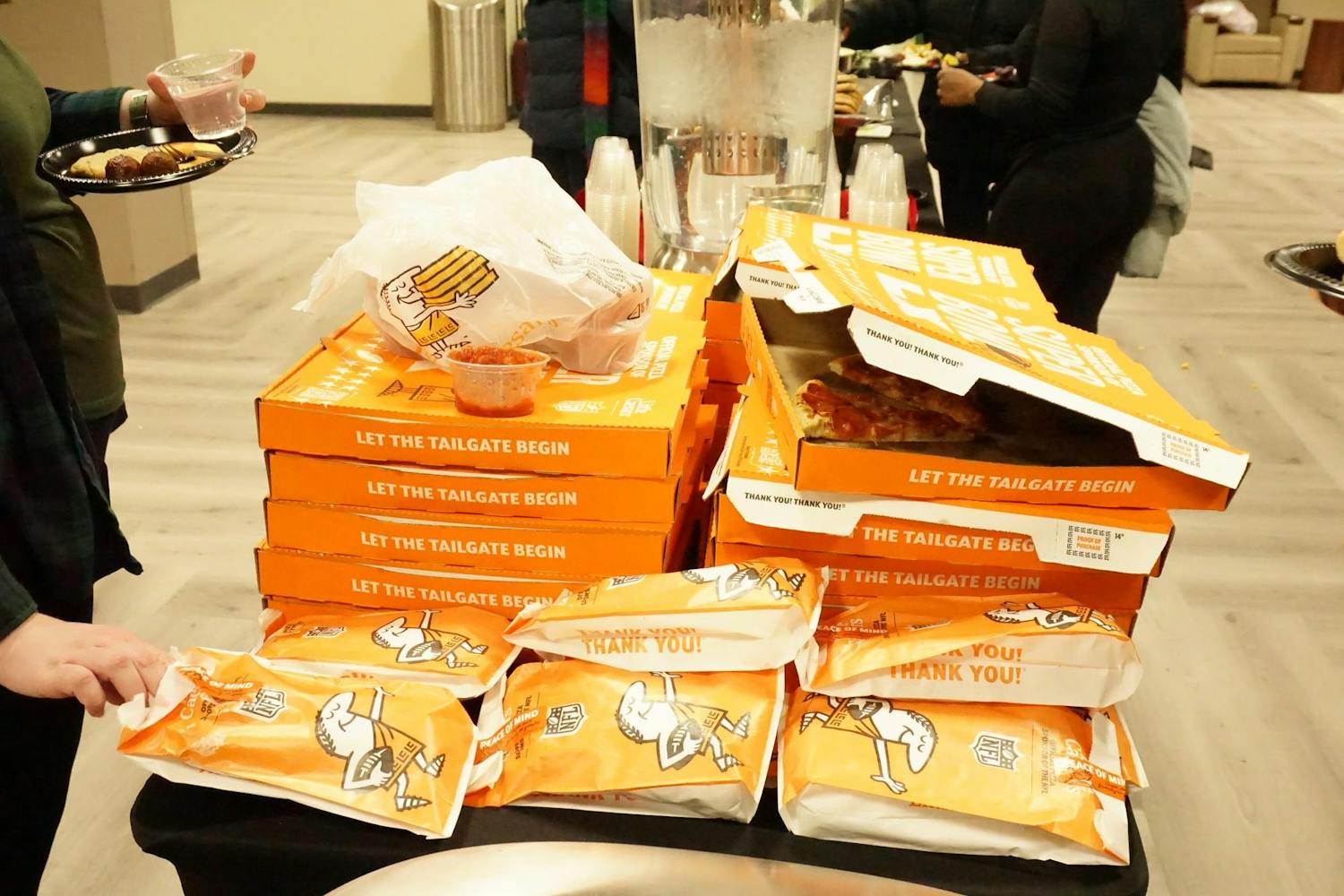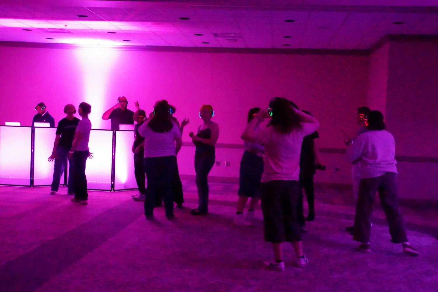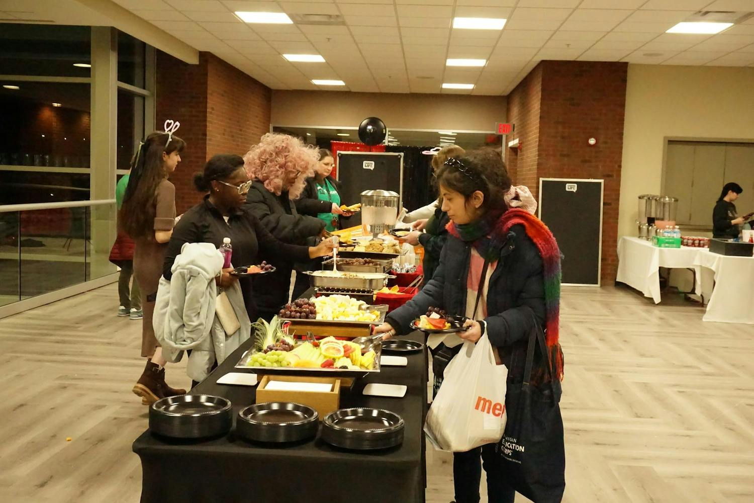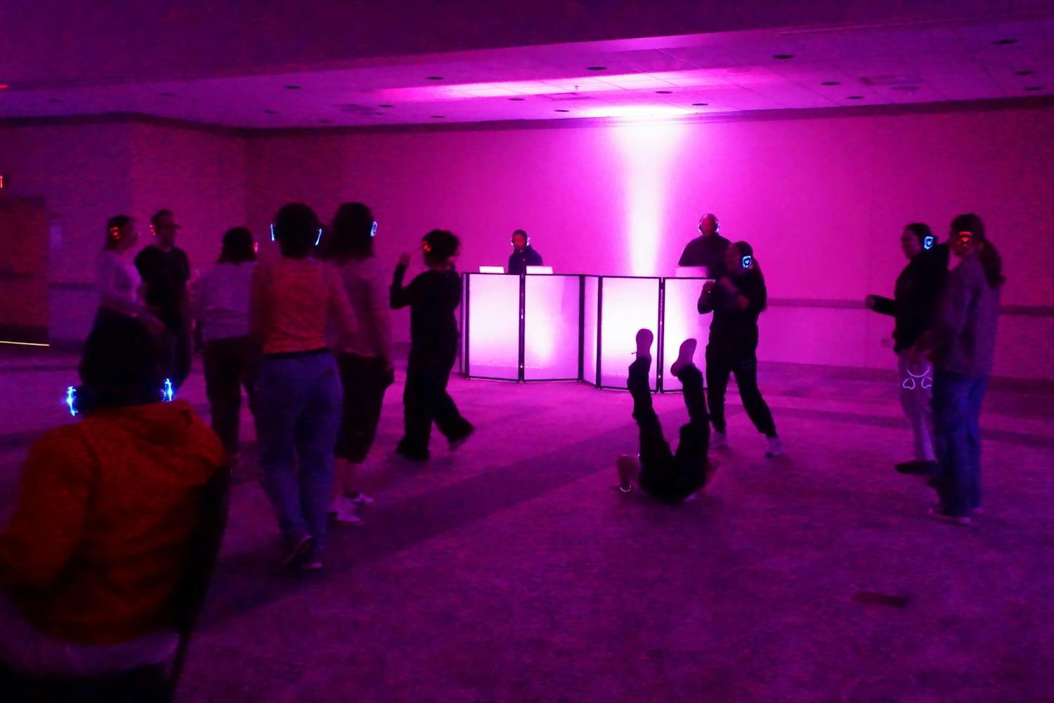 The Be Your Own Valentine silent disco was hosted by the Office of Access and Opportunity for students to practice self-love in preparation for Valentine's Day. The event featured enough food for over 200 people, which included pizza and breadsticks from Little Caesars, an assortment of fruit, meatballs, chips, and queso. The event also featured a mocktail station for students to enjoy while they danced to music mixed by two DJs. The silent disco took place in the Student Center Ballroom on Tuesday, Feb. 10, 2026. (Gallery by Owen Cardenas)