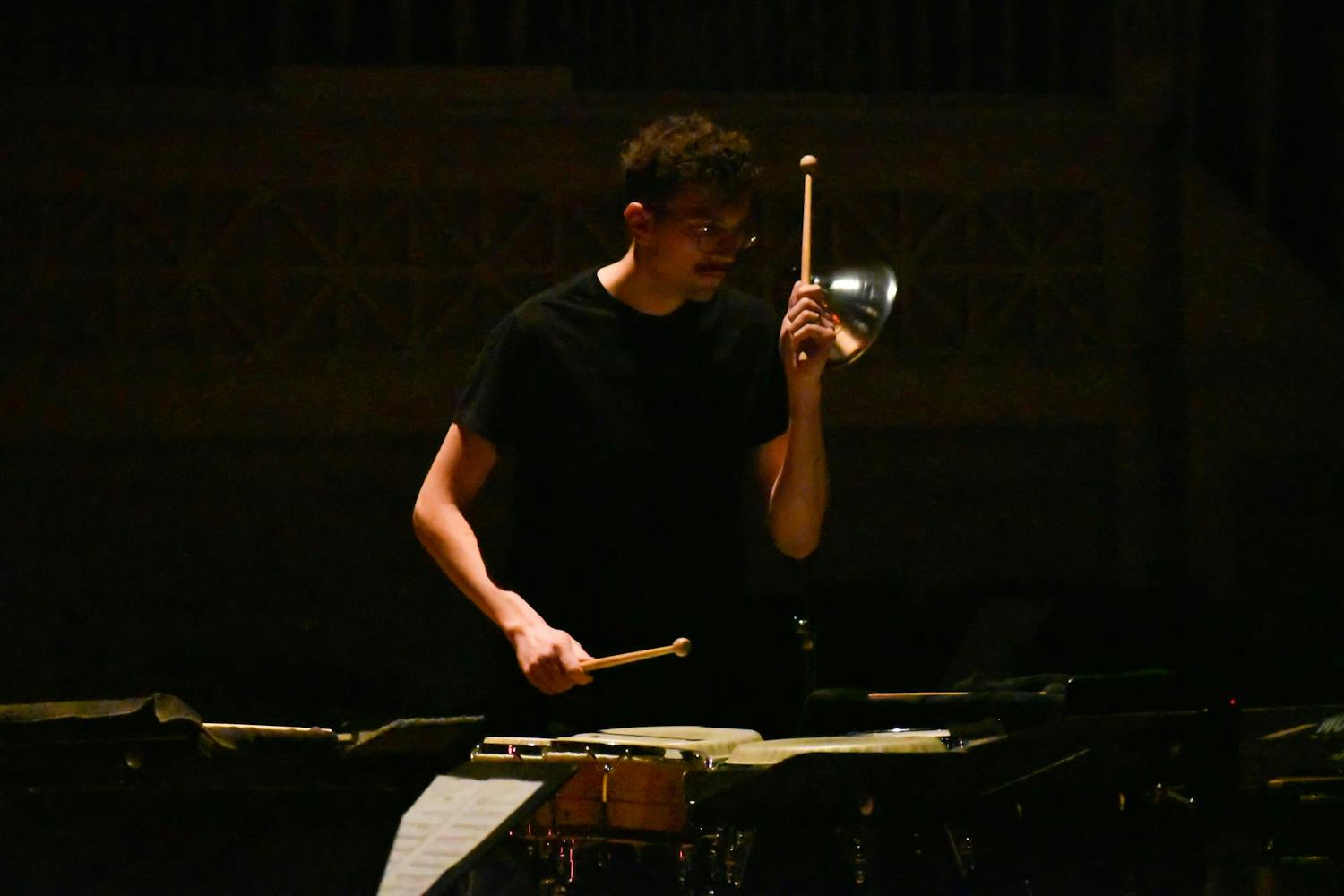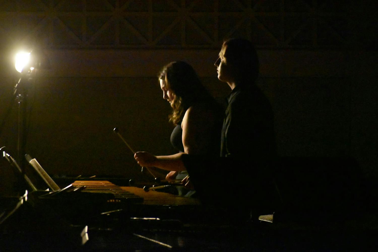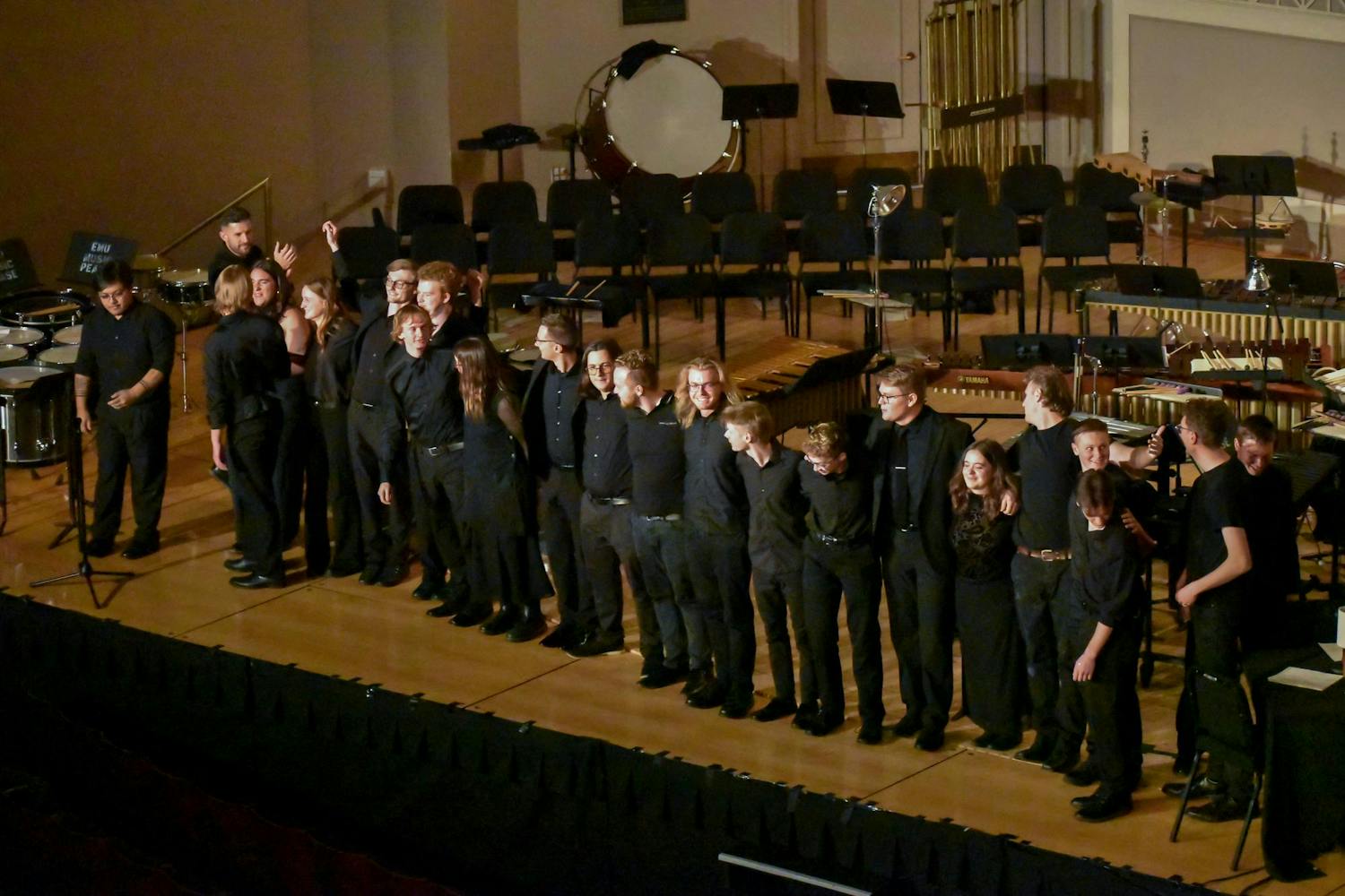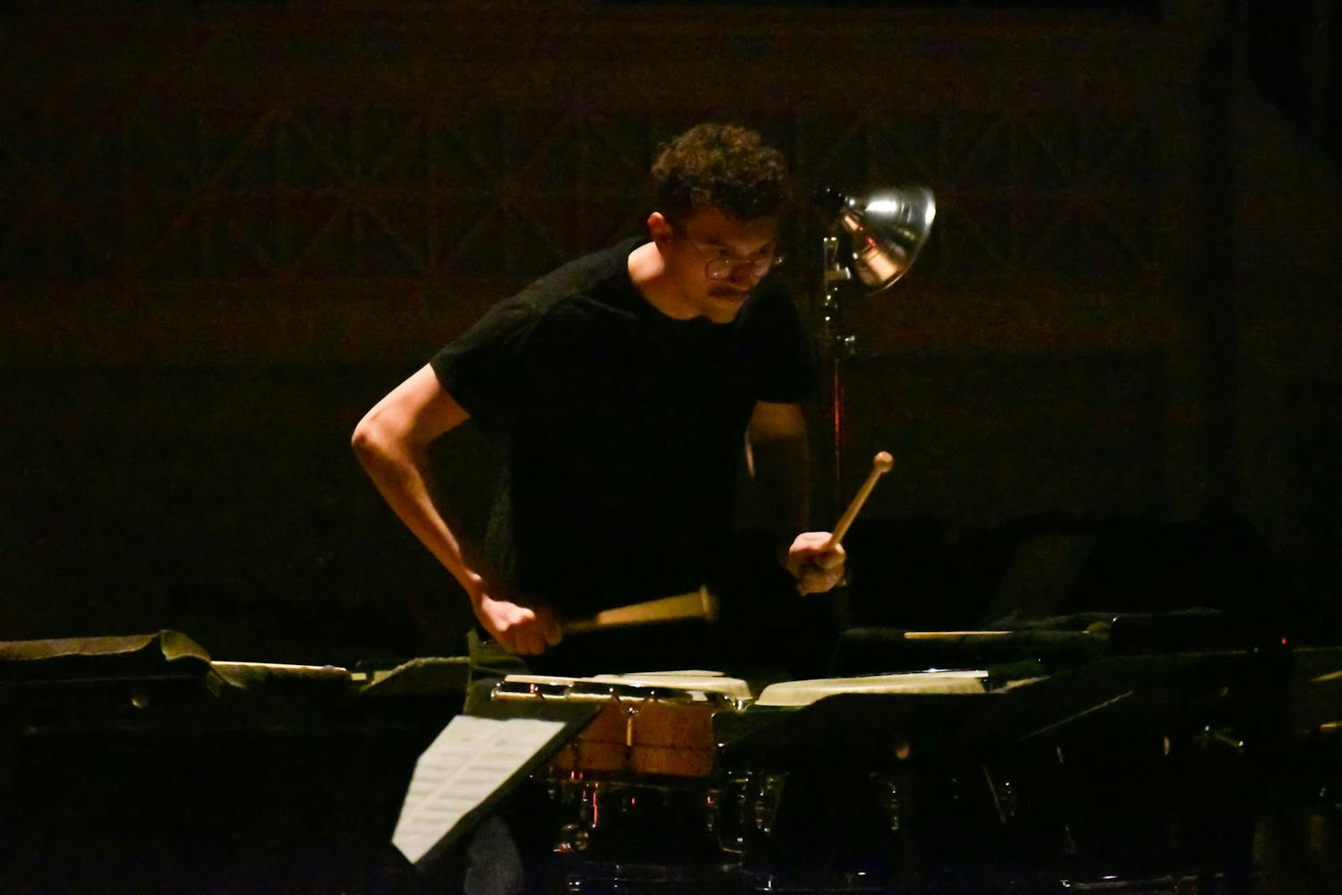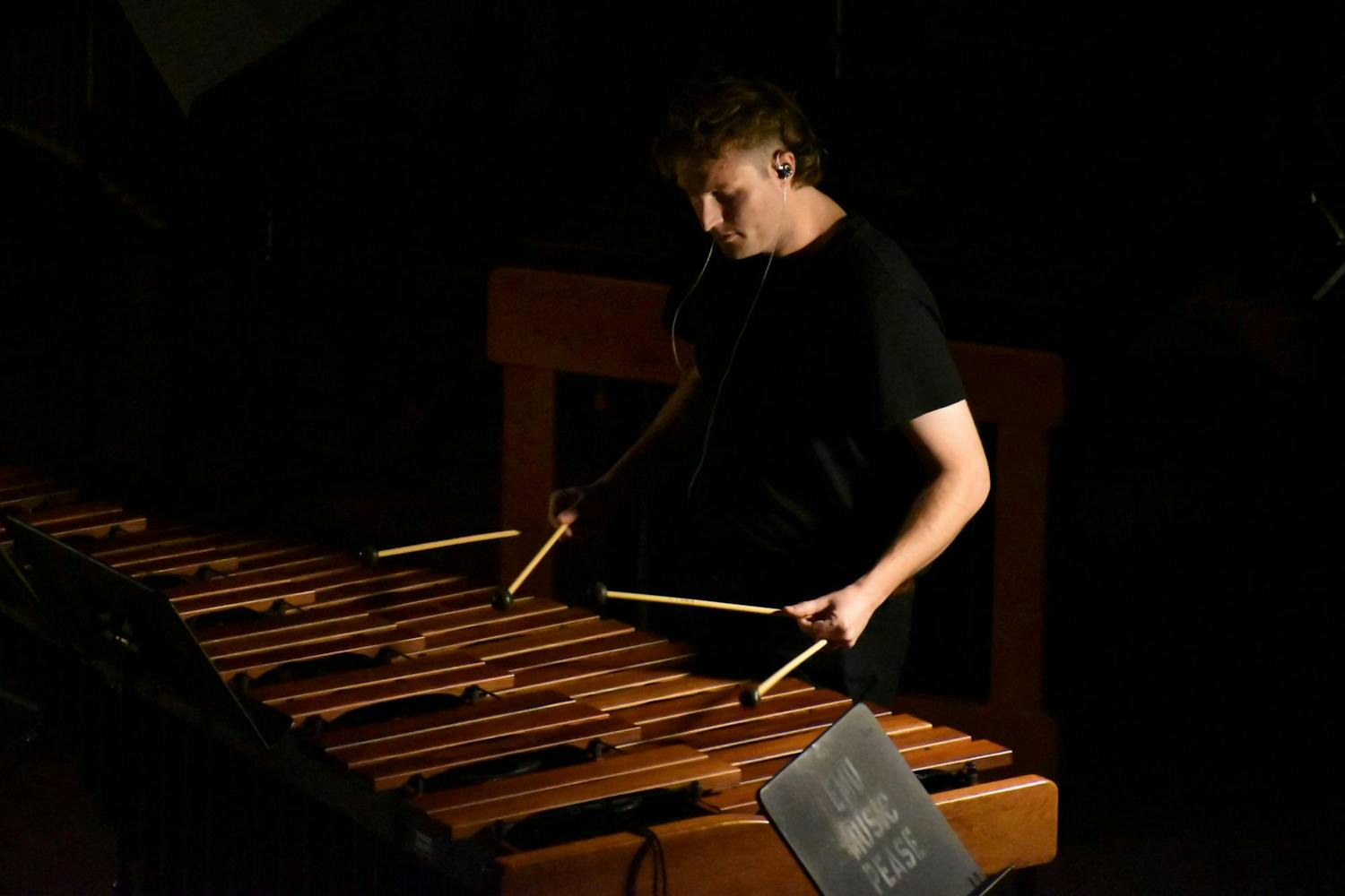 Featuring over 20 performers and 11 compositions, the EMU Percussion Ensemble performed their fall 2025 concert titled Cycles in Sound in Pease Auditorium on Thursday, Nov. 20. (Gallery by Max Taylor)