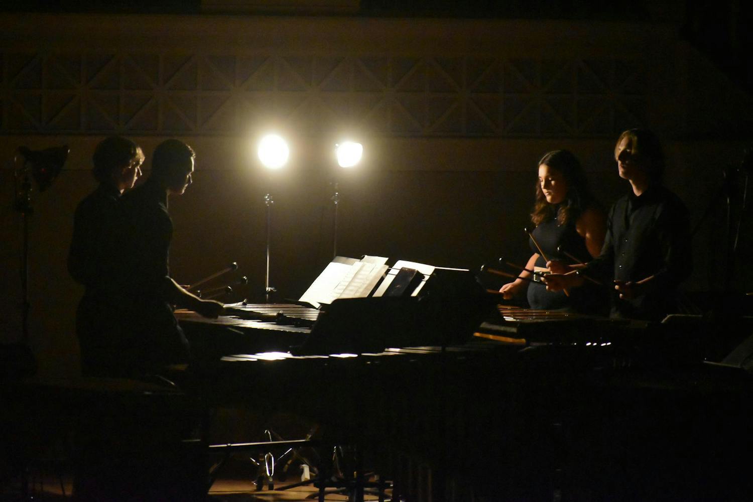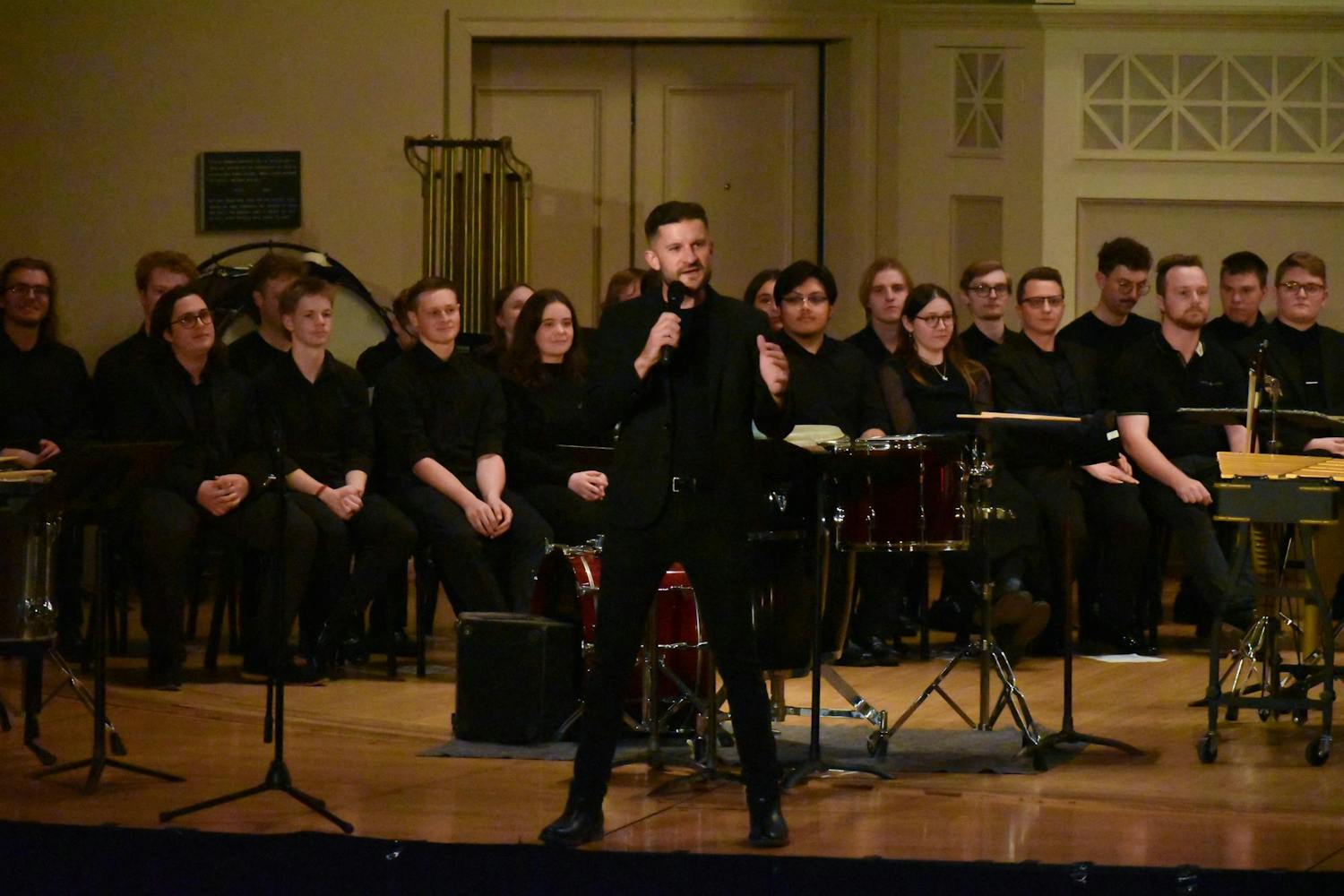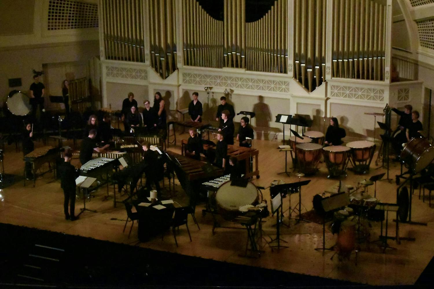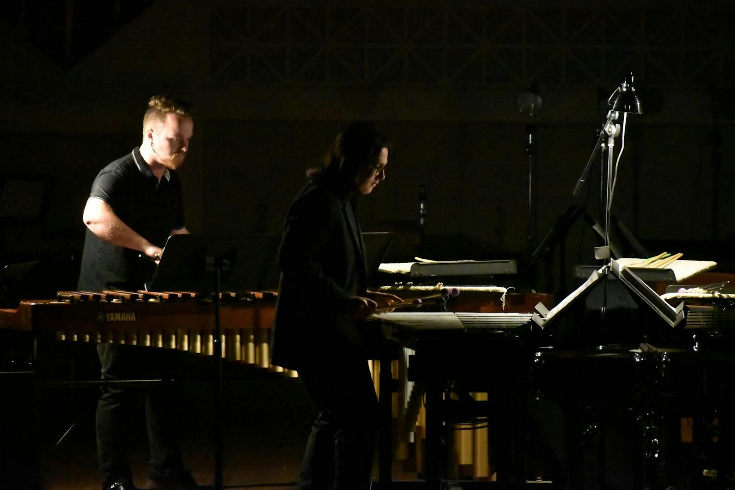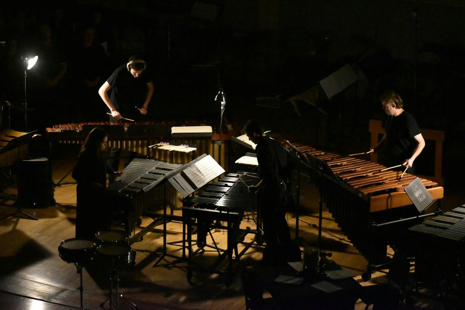 Featuring over 20 performers and 11 compositions, the EMU Percussion Ensemble performed their fall 2025 concert titled Cycles in Sound in Pease Auditorium on Thursday, Nov. 20. (Gallery by Max Taylor)