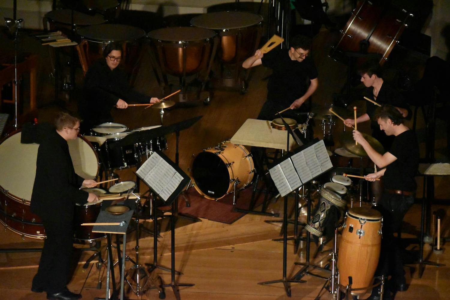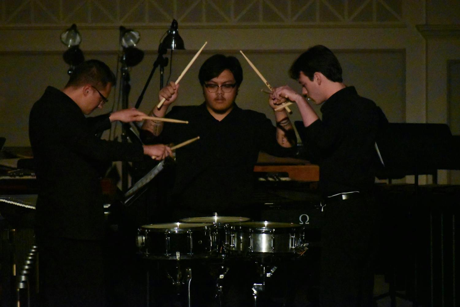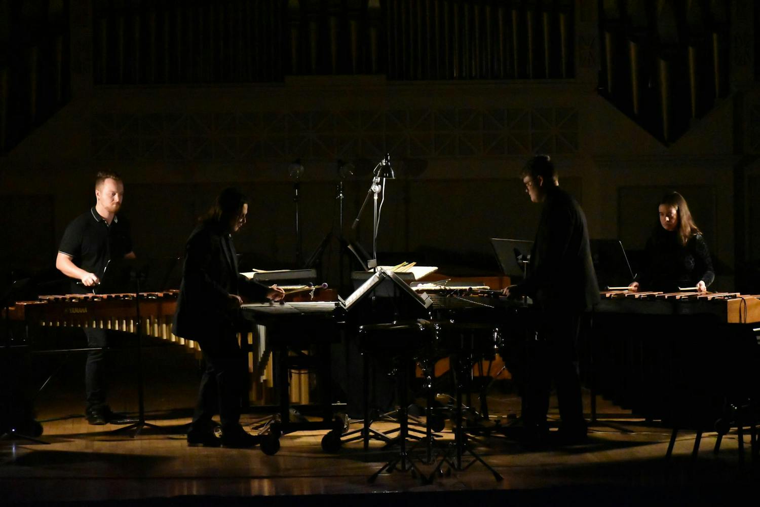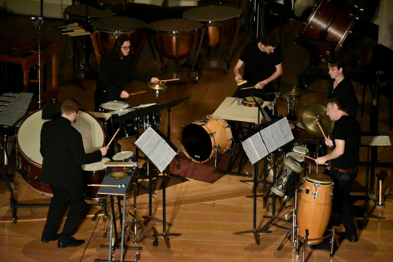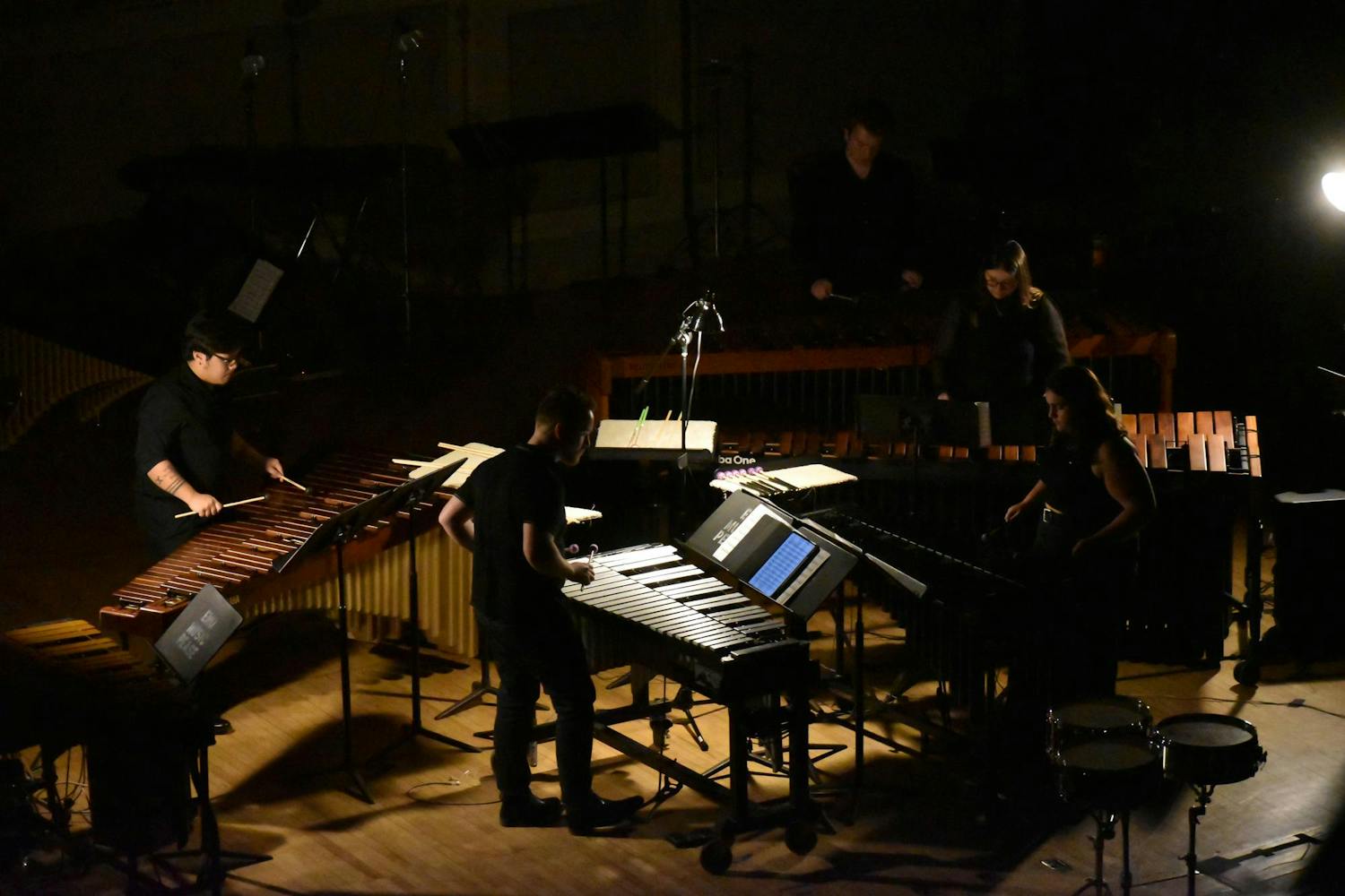 Featuring over 20 performers and 11 compositions, the EMU Percussion Ensemble performed their fall 2025 concert titled Cycles in Sound in Pease Auditorium on Thursday, Nov. 20. (Gallery by Max Taylor)