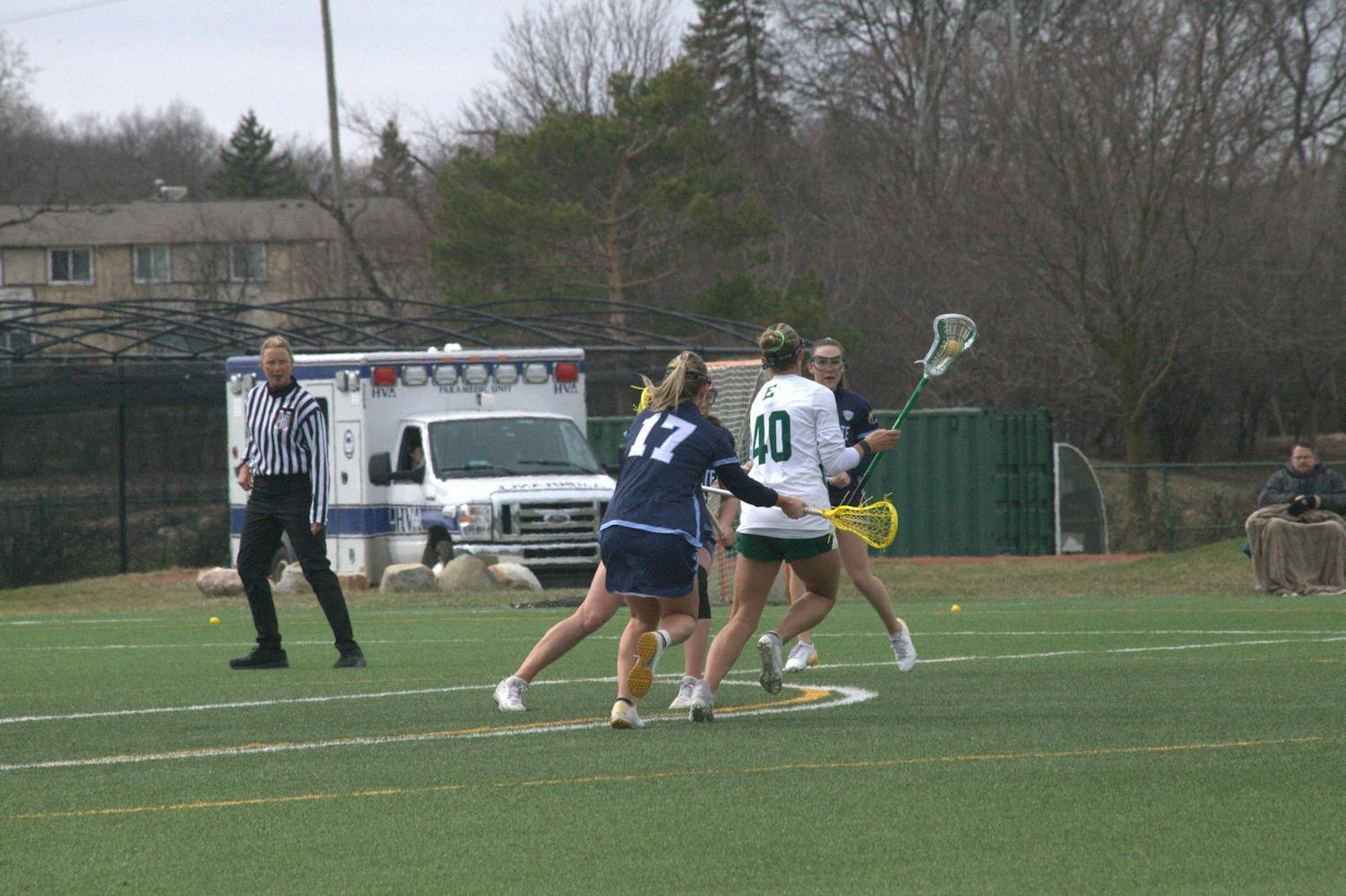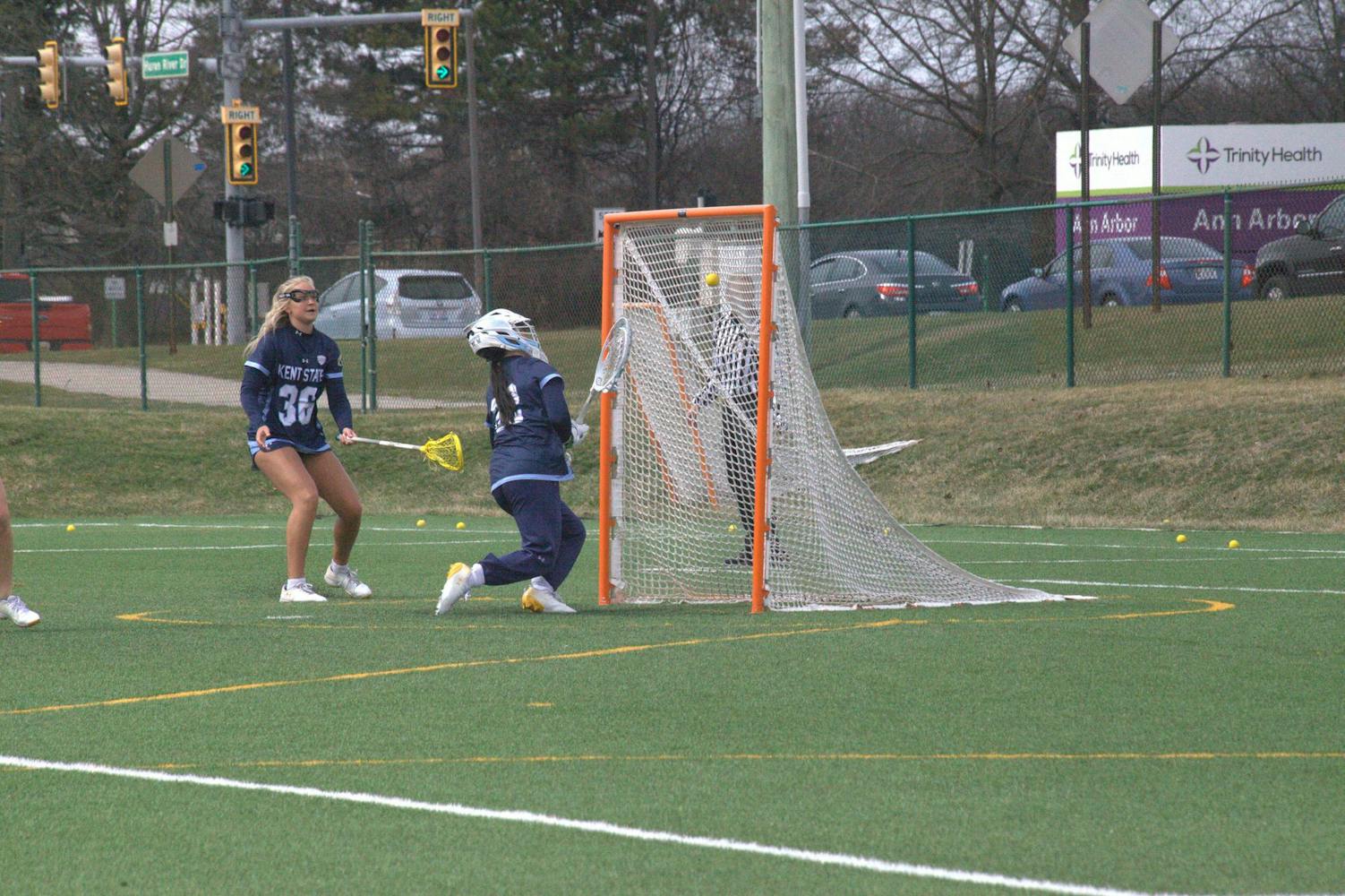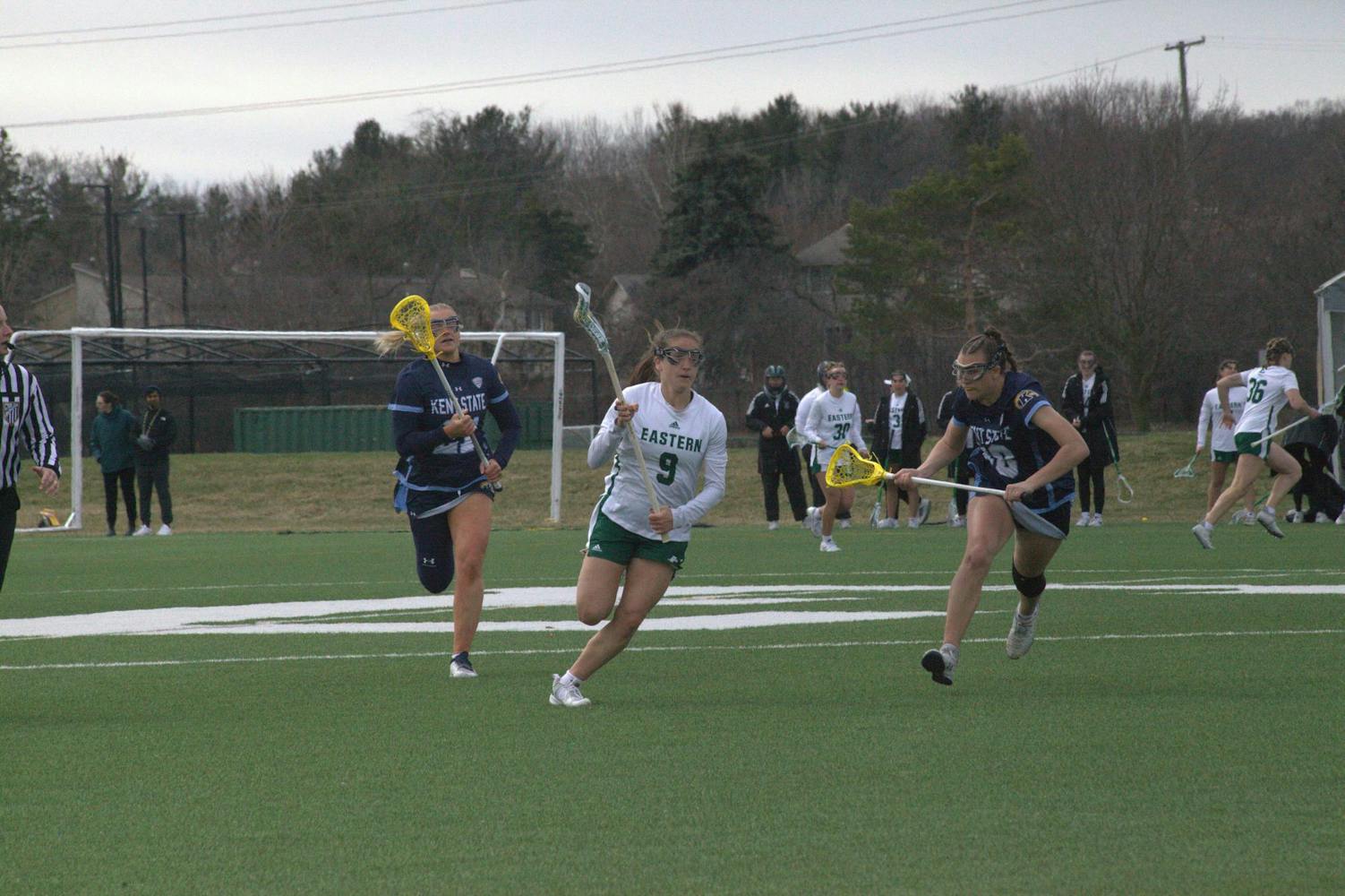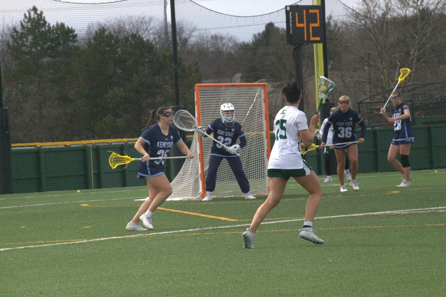 Eastern Michigan University's women's lacrosse team won 12-6 against Kent State University at Scicluna field on March 14, 2026. The game honored the legacy of Morgan Rodgers who lost her life to suicide in July of 2014 a couple of years after a season-ending knee injury. The game was dedicated to her and to eliminating the stigma surrounding mental health, empowering athletes on and off the field, and to promoting the message that mental health is just as important as physical health. (Gallery by Maddy Makin)