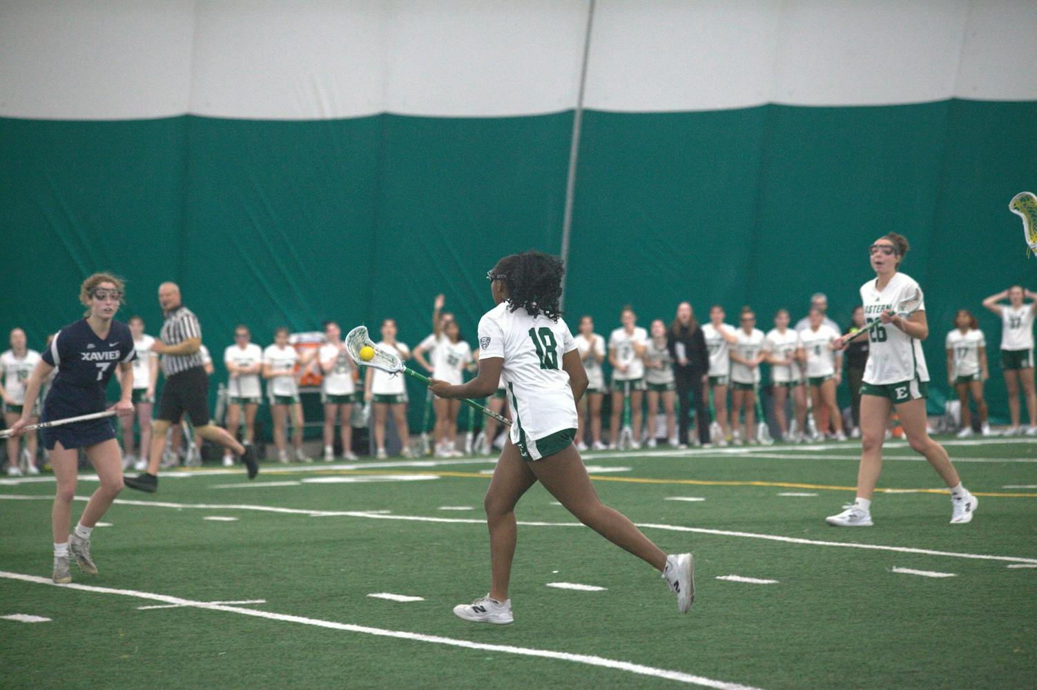 Eastern Michigan University emerged victorious 9-7 in the fast-paced women's lacrosse game against Xavier University on Feb. 14, 2026. (Gallery by Maddy Makin)