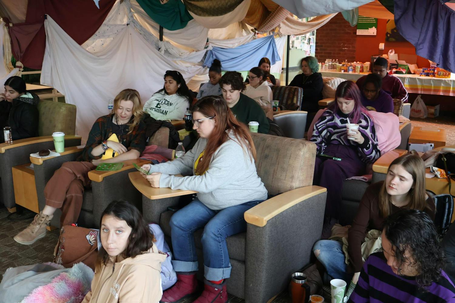 To help students wind down between finals, Campus Life hosts Finals Lounges in the Student Center where students can relax, find snacks, and enjoy fun activities. On Tuesday December 16 2025, Campus Life had a bagel bar, board games, and hosted Bingo at EMU. The day was filled with fun, relaxation, and prizes. (Gallery by Lee Hammock)