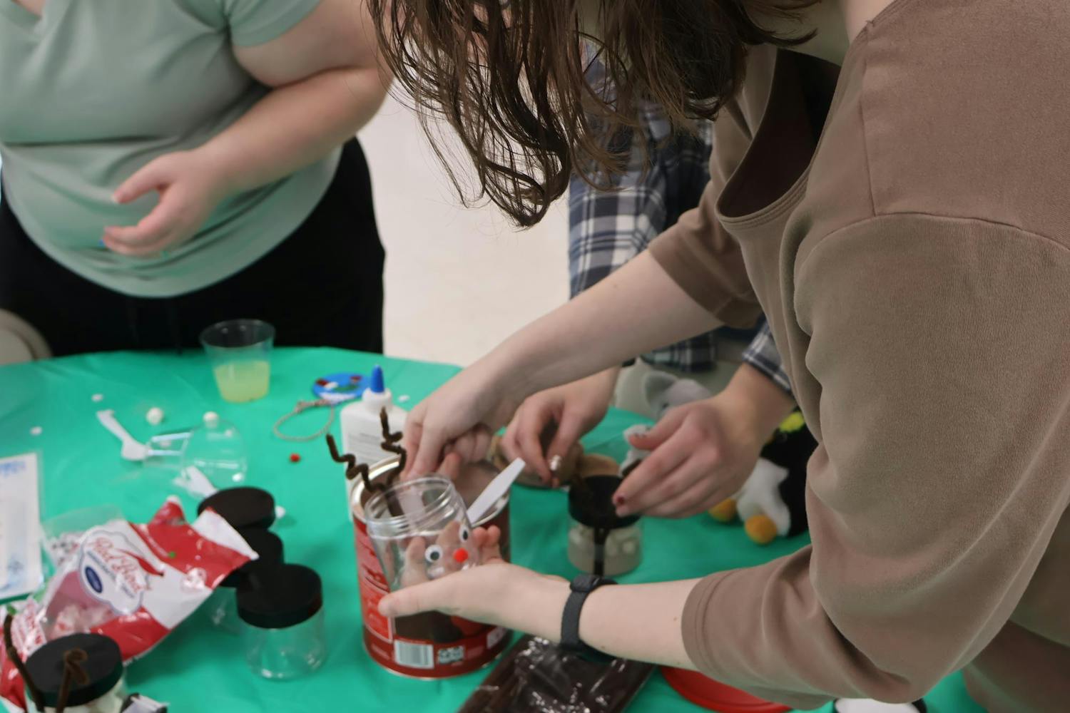 The Honors College Holiday Swoopla invited students to create holiday themed crafts. Activities included card decorating, ornament painting, keychain making, and crafting hot cocoa reindeer jars. The event was held in the Honors College Reception Hall on Saturday, Nov 6 2025. (Gallery by Lee Hammock)