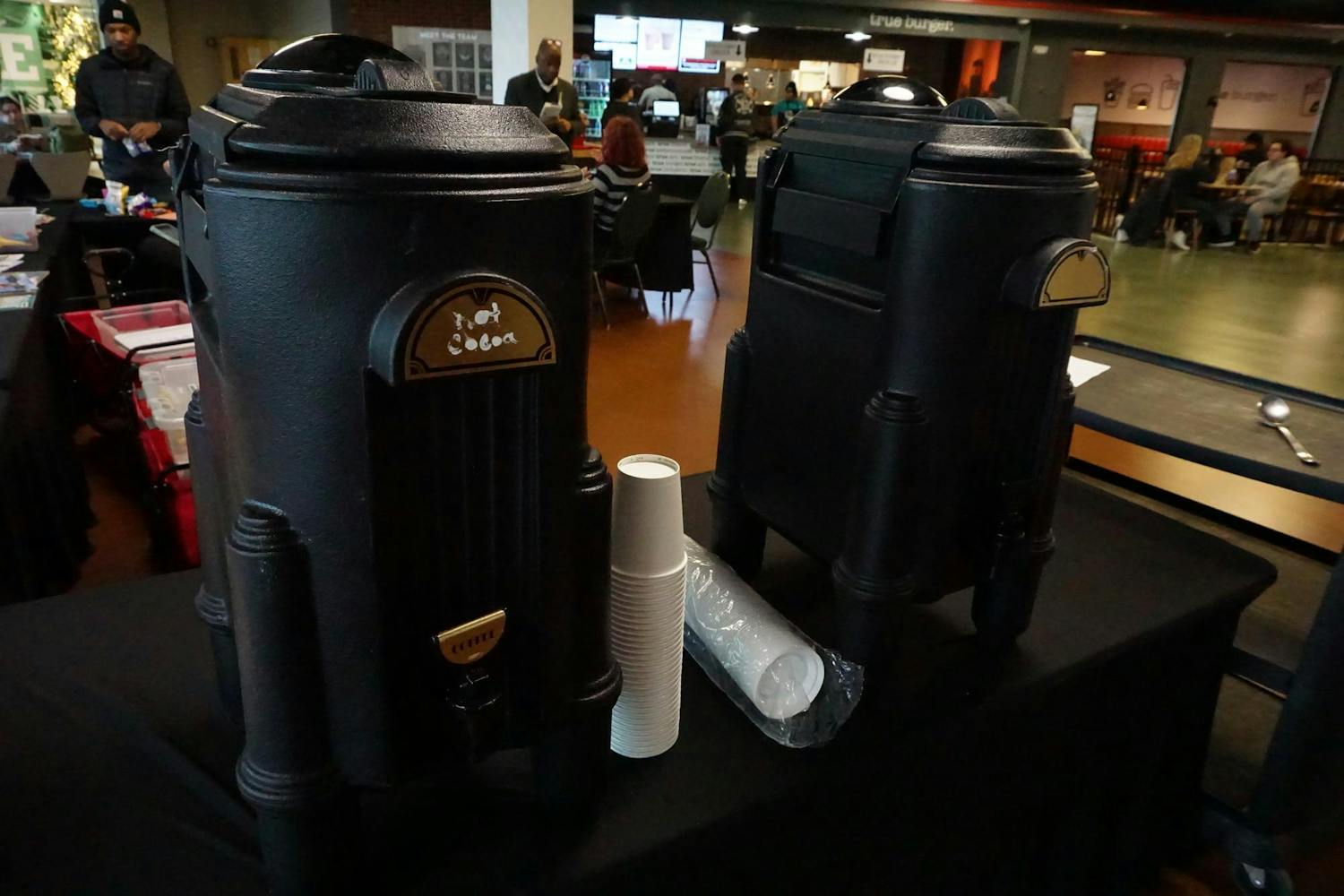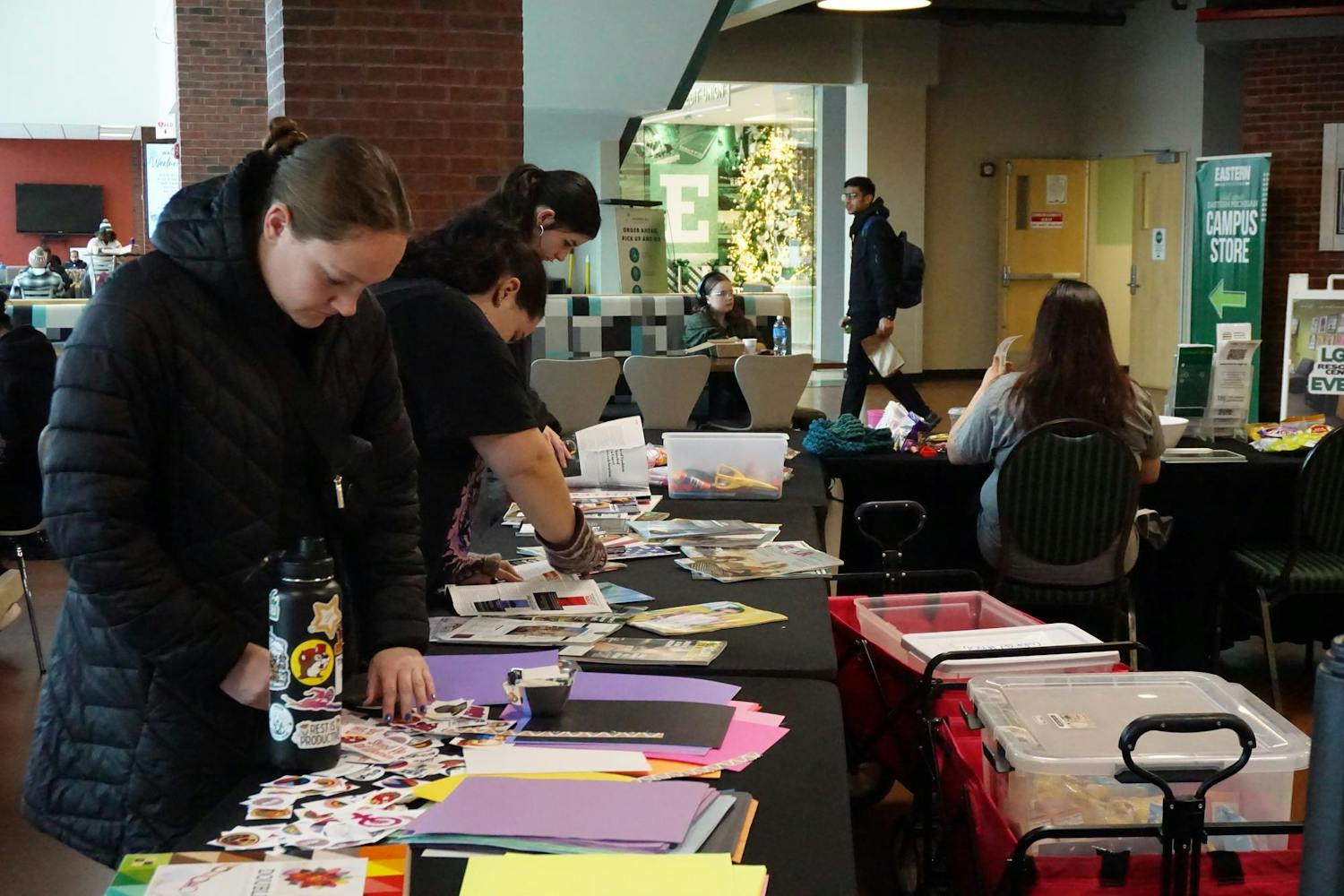 The Vision and Vibes event existed for students to create handmade vision boards with the option to enter a raffle once completed. Materials were set out by the hosts which were CORE, LGBTRC, and WRC and featured refreshments like hot cocoa for students to enjoy while crafting. The event took place on the first floor of the Eastern Michigan University Student Center on Wednesday, Dec 10, 2025. (Gallery by Owen Cardenas)