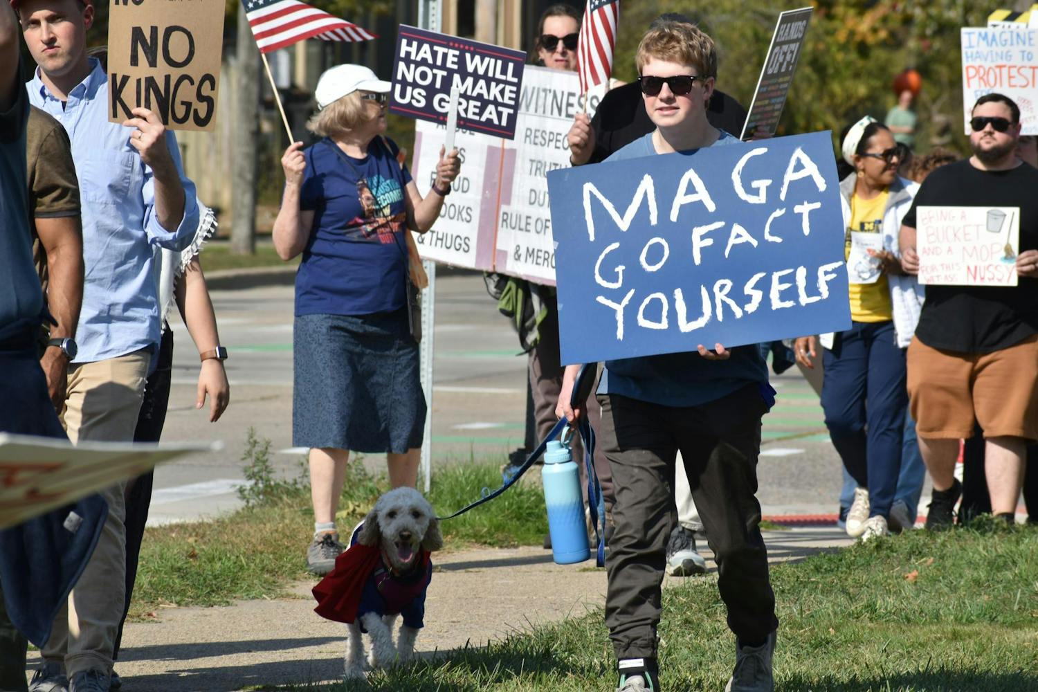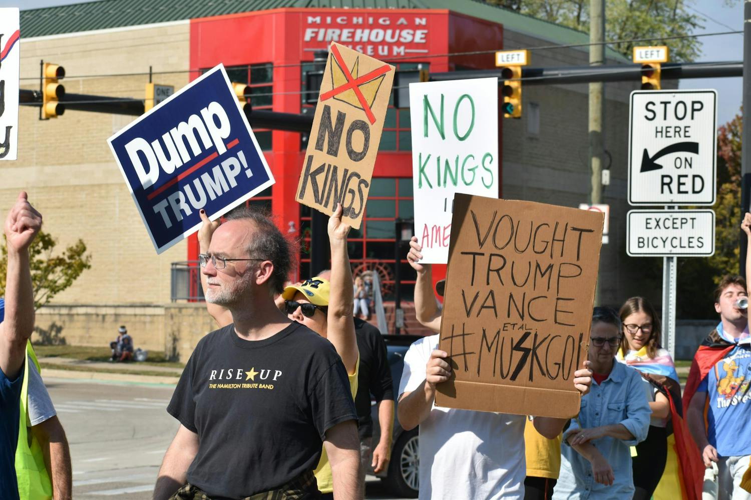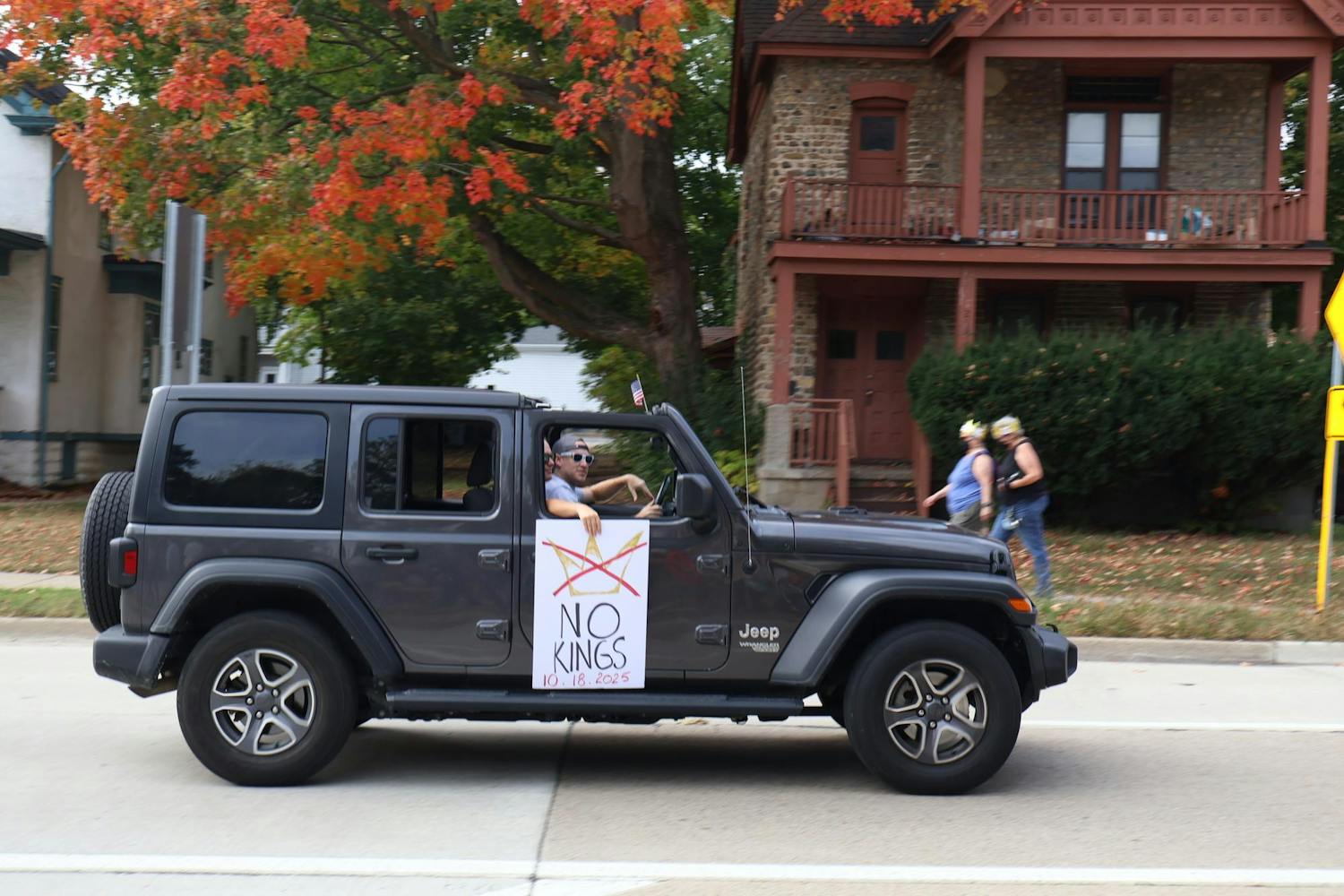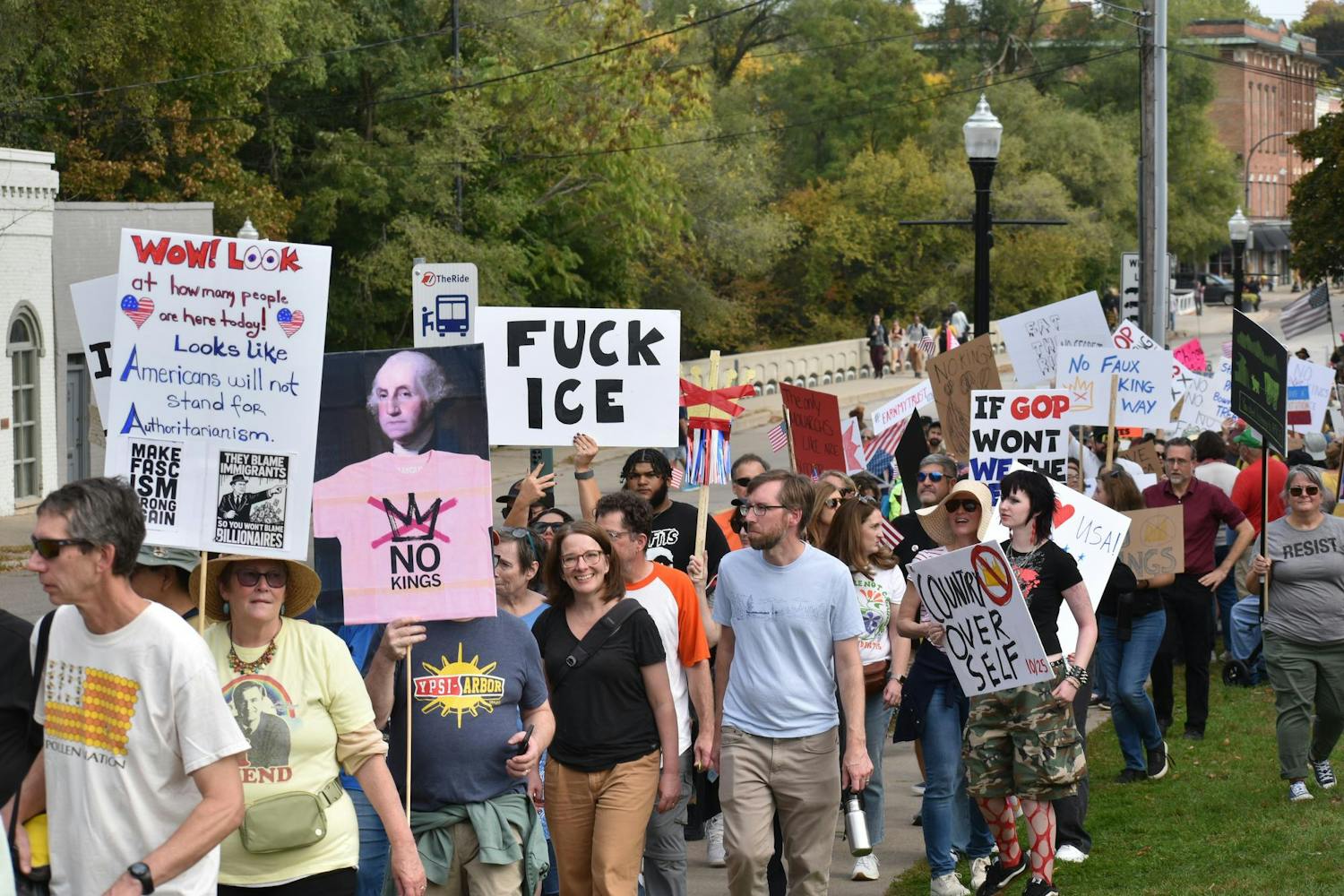 Thousands of participants took to the sidewalks and streets of Ypsilanti for the No Kings protest on Saturday, Oct. 18, 2025. (Gallery by Max Taylor and Lee Hammock)