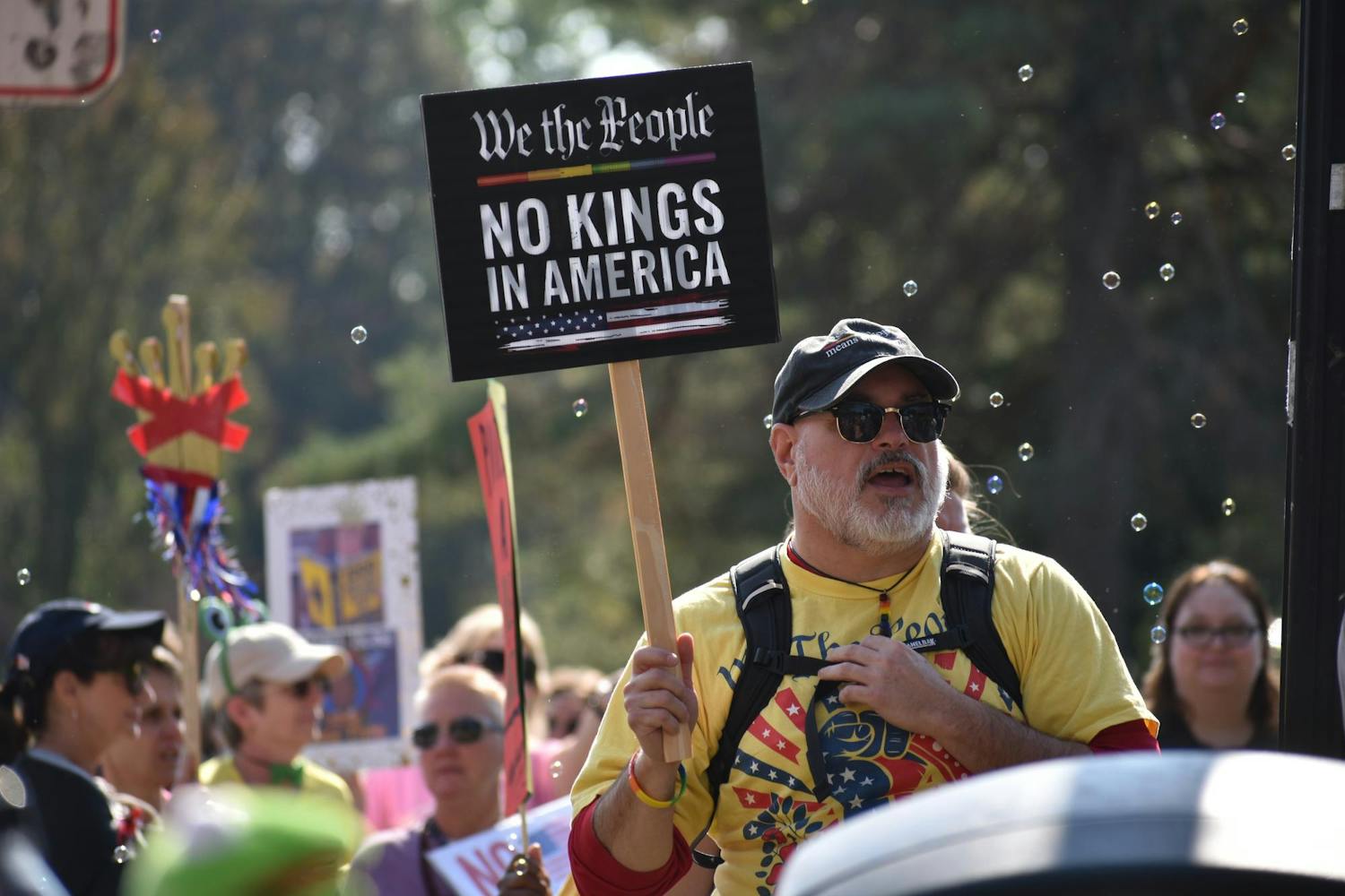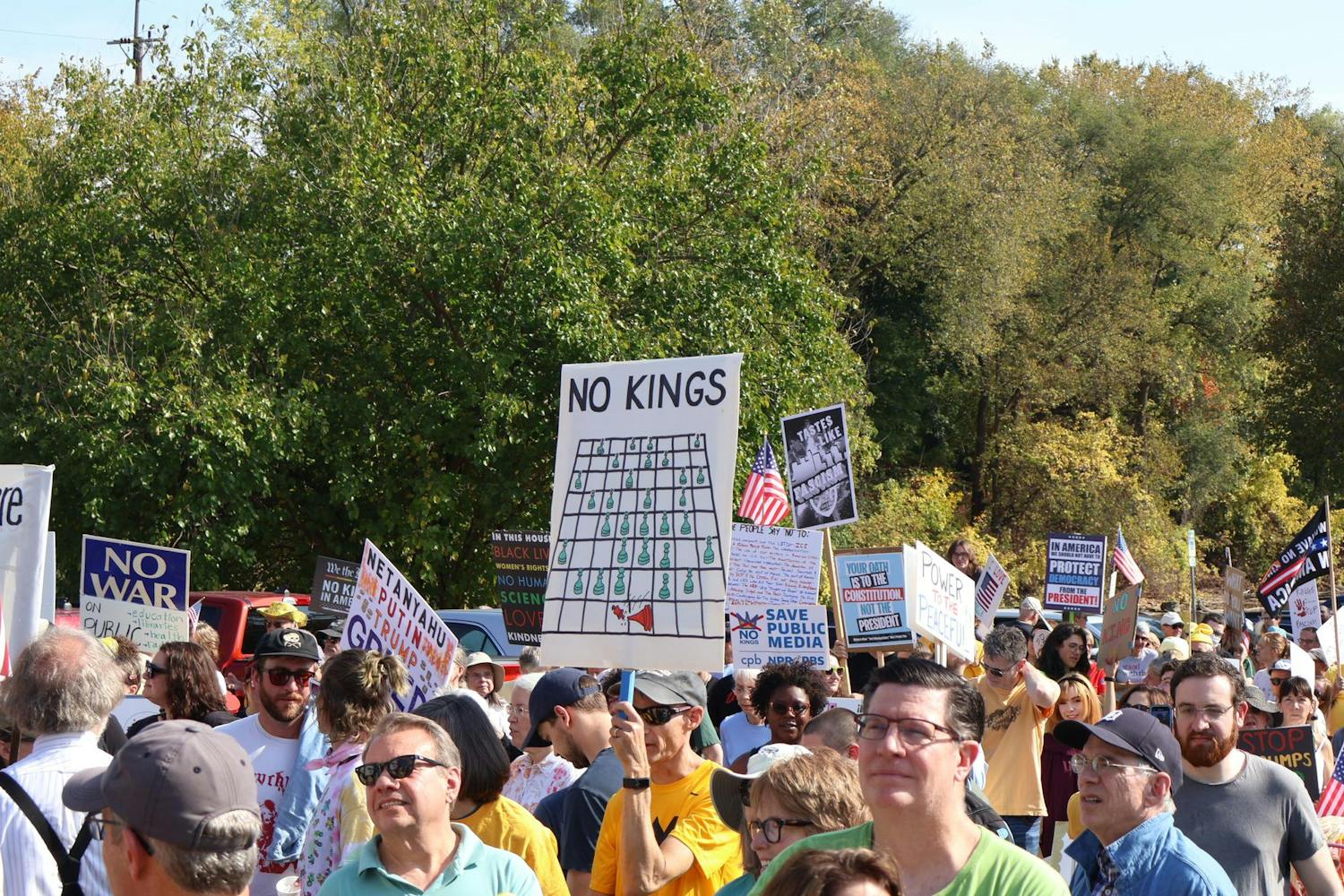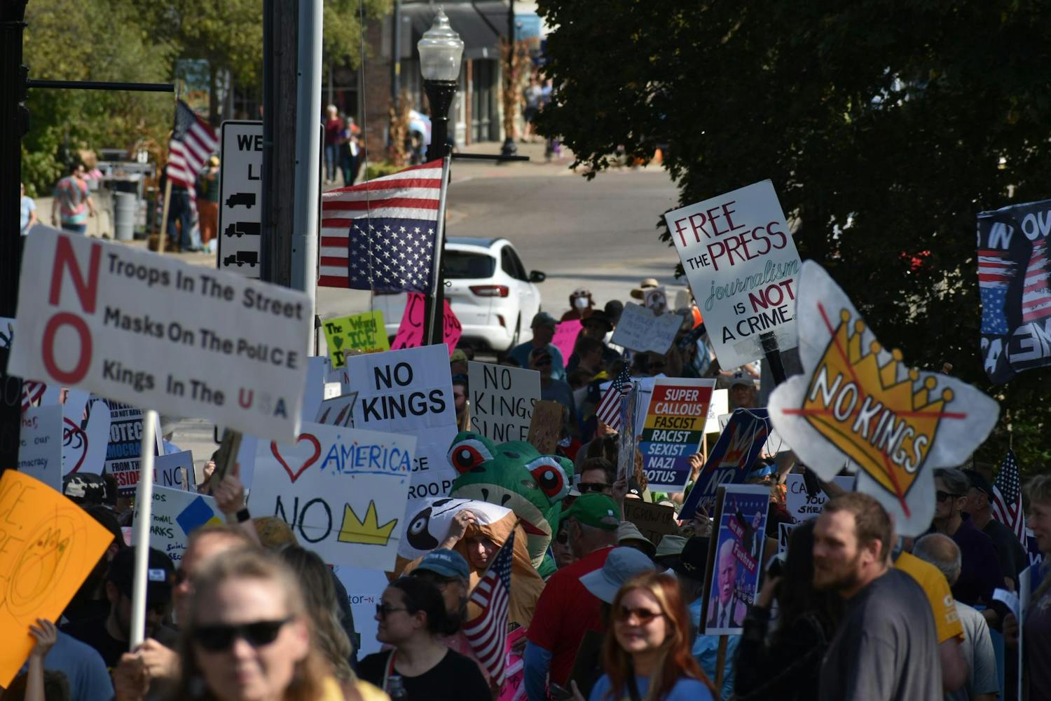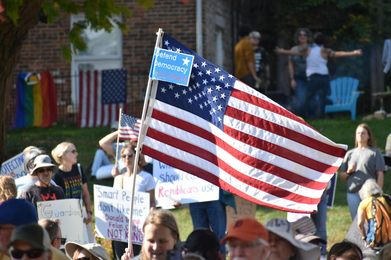 Thousands of participants took to the sidewalks and streets of Ypsilanti for the No Kings protest on Saturday, Oct. 18, 2025. (Gallery by Max Taylor and Lee Hammock)