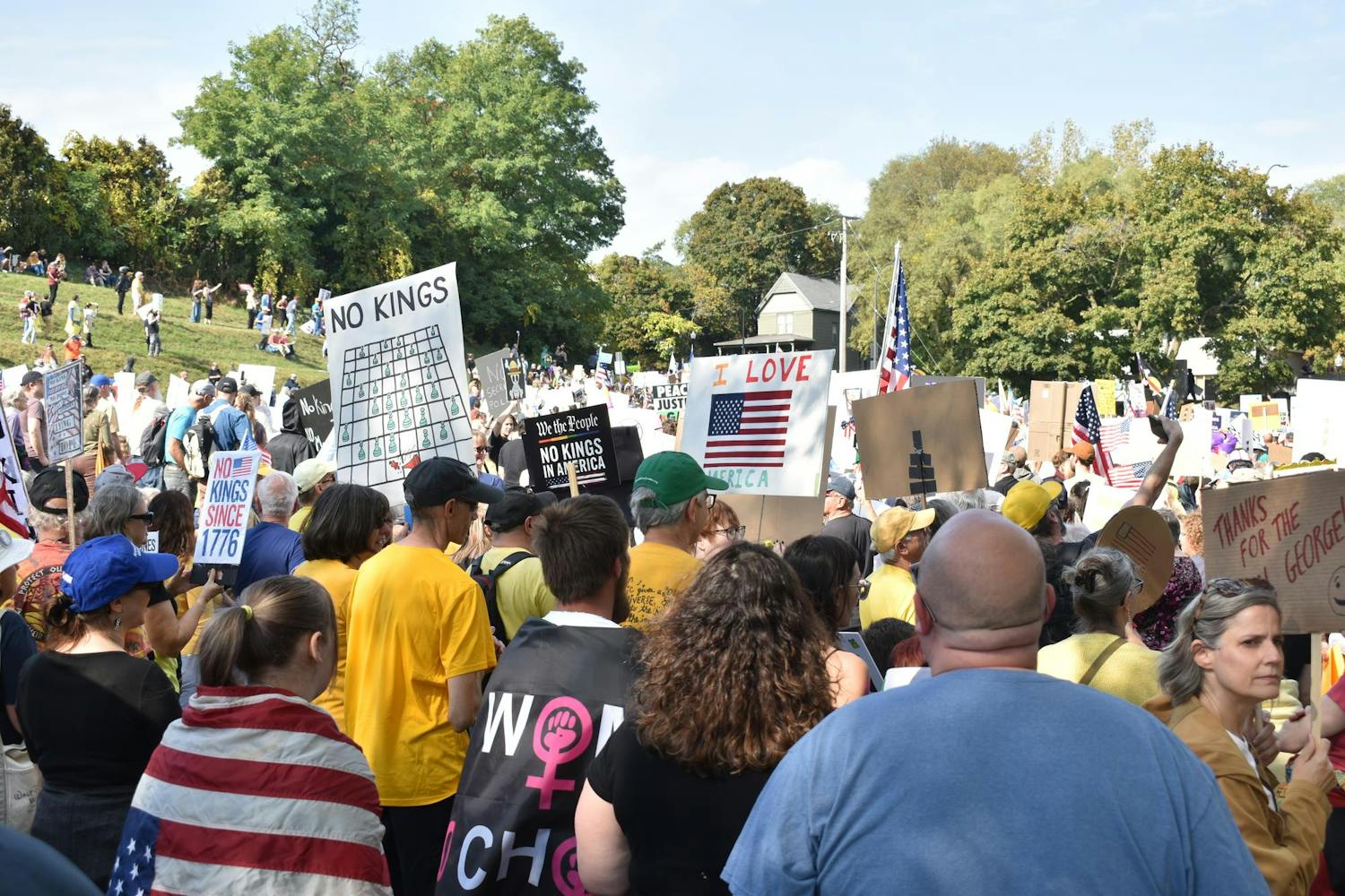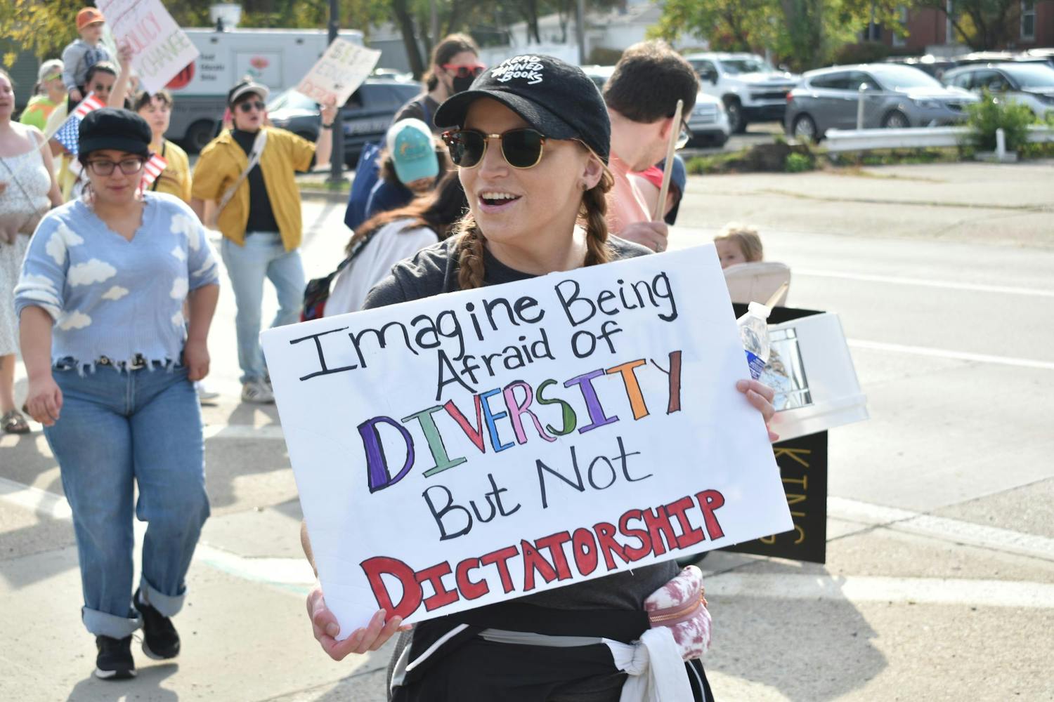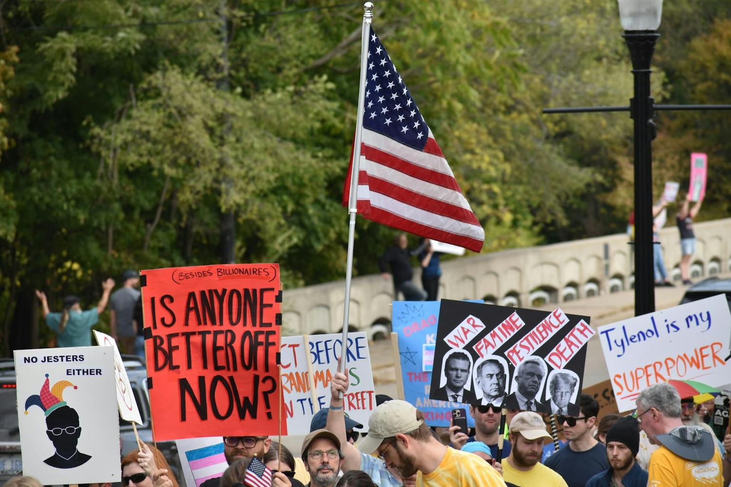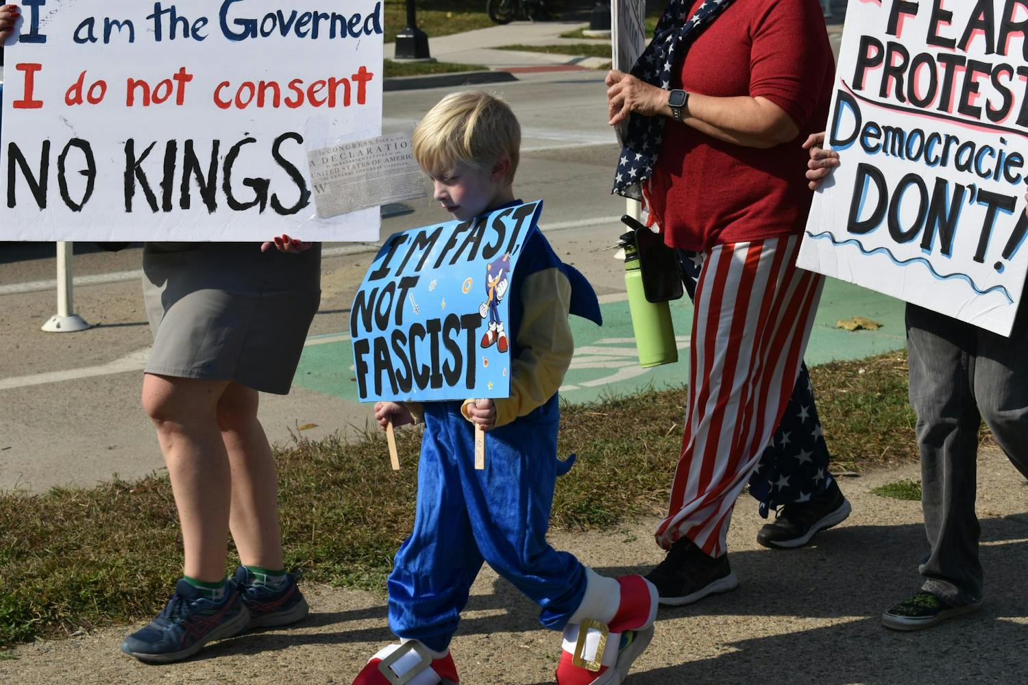 Thousands of participants took to the sidewalks and streets of Ypsilanti for the No Kings protest on Saturday, Oct. 18, 2025. (Gallery by Max Taylor and Lee Hammock)