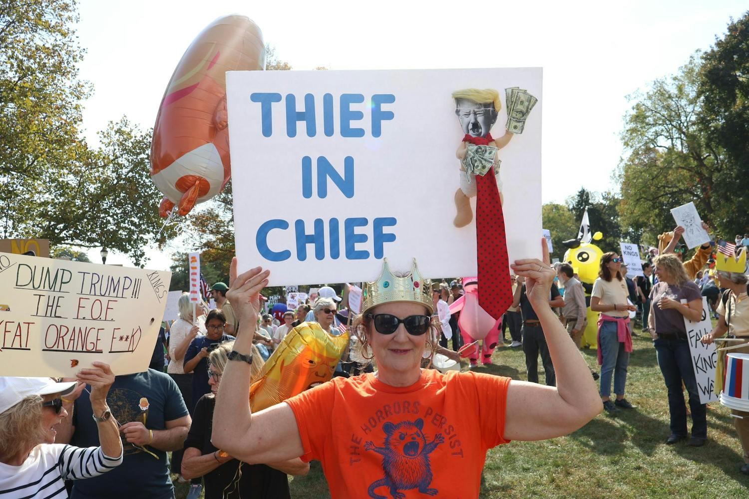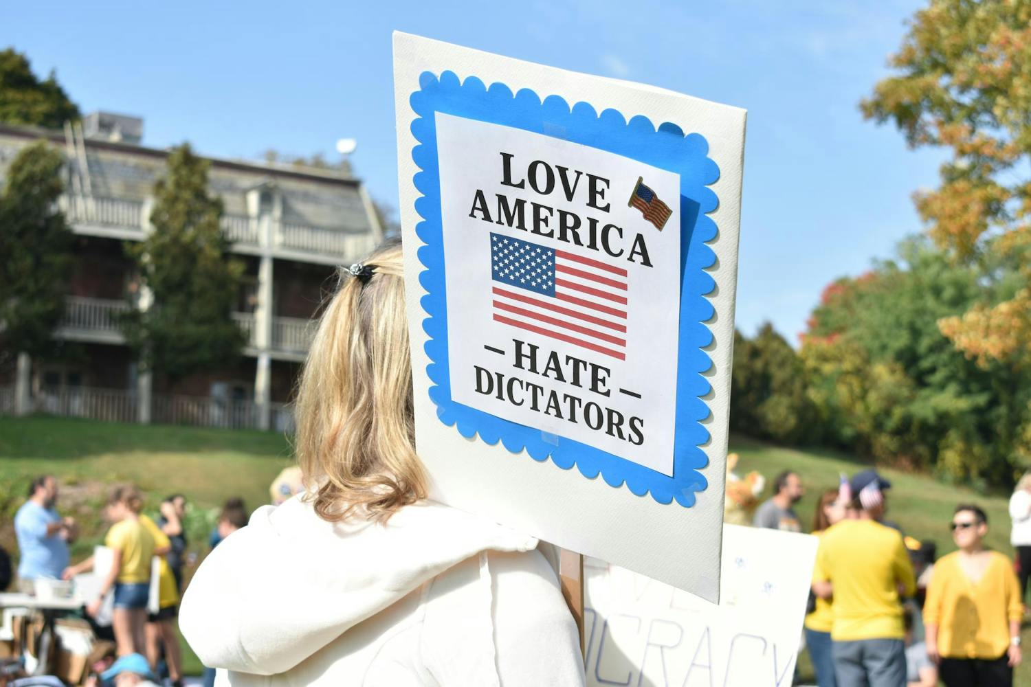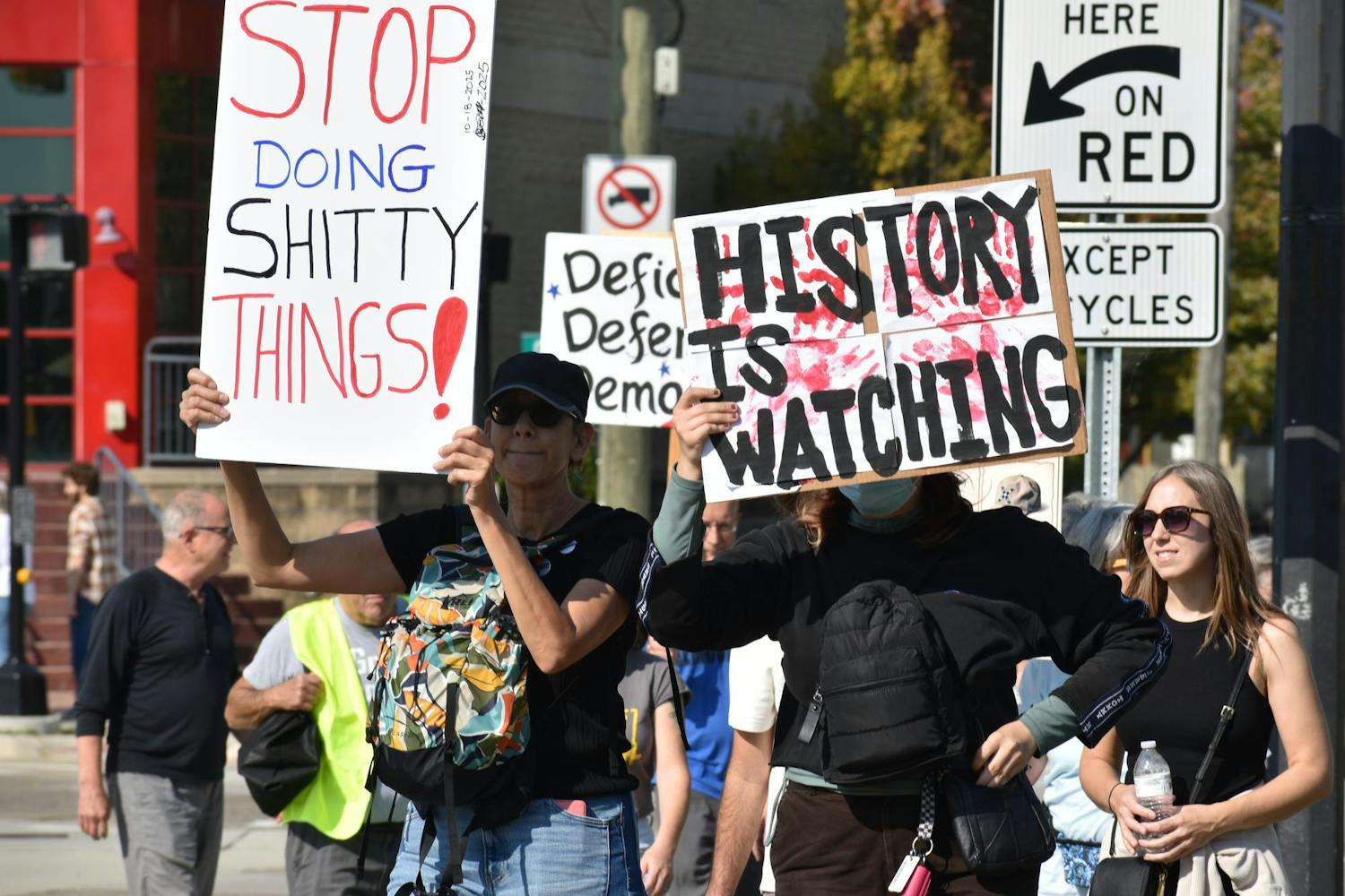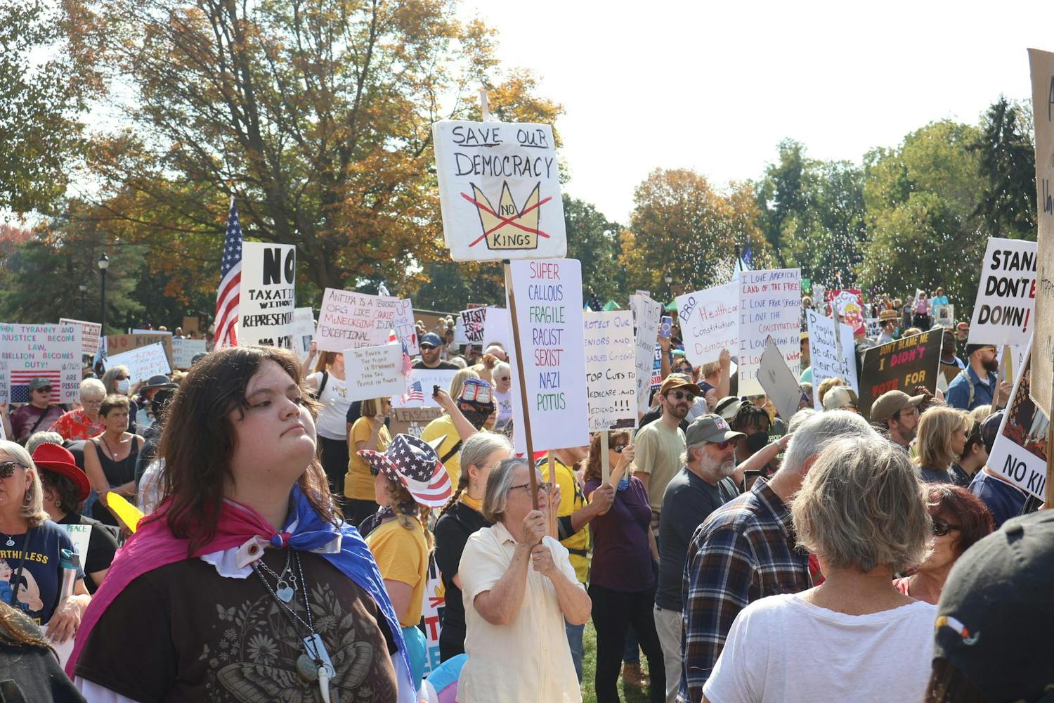 Thousands of participants took to the sidewalks and streets of Ypsilanti for the No Kings protest on Saturday, Oct. 18, 2025. (Gallery by Max Taylor and Lee Hammock)