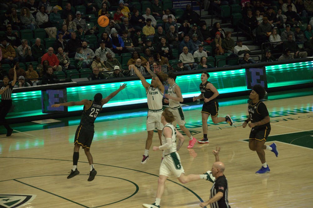 Mak Manciel shoots basketball #1 Mak Manciel shoots the basketball at the Jan. 24, 2026, men's basketball game against Kent State at the George Gervin GameAbove Center.