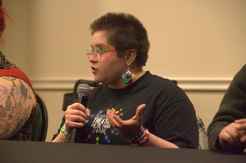 At the Disability Revolution Club's Panel Exploring Disability and Relationships hosted at the Student Center on Feb. 13, 2026, Sean Edwards offers suggestions on how Eastern Michigan can make events more accessible, including offering fidgets and ear plugs to guests.