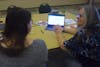 Career coach Barb Gehring shows participants how to use Jobscan to organize job hunting information at the Career Fair Preparation Workshop on Monday, March 9.
