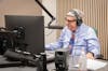 Reporter Kevin Meerschaert shows guests the brand new and modern equipment that he will be operating at the new WEMU station in Halle Library.