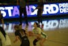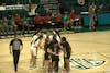 The Eastern Michigan University and Norther Illinois University teams circle up during a timeout at the Jan. 24, 2026 women's basketball game at the George Gervin GameAbove Center.