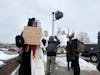 Tattoo artist Hannah Blackburn raises a sign in support during a Jan. 31, 2026, rally against Immigration and Customs Enforcement action at the corner of Huron Parkway and Washtenaw Avenue.