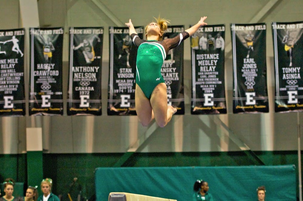 The Eastern Michigan University women’s gymnastics team was able to gather its first win of the season against Texas Women’s University but came up just short against their MAC rival Central Michigan University on Friday.