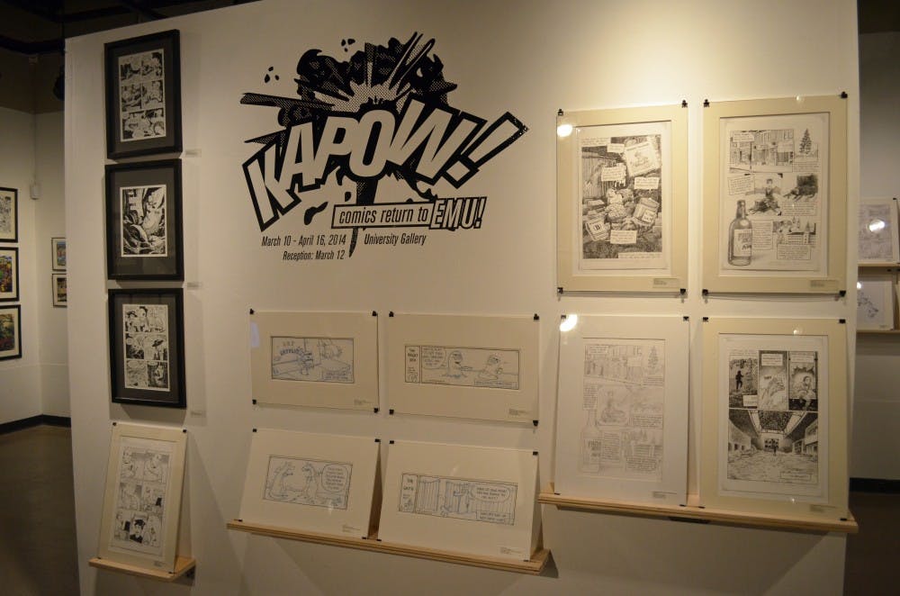 Kapow! Comics Exhibit at Eastern Michigan University’s Student Center is back for another round, and this time is even better than the last. This gallery of student work has been occurring every few years since 2001, and each time churns out more talent than the previous exhibition.